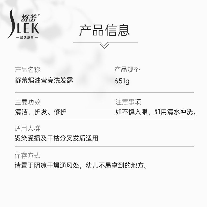 舒蕾焗油莹亮洗发水651g改善毛躁深层滋养干枯柔顺男女通用洗头露