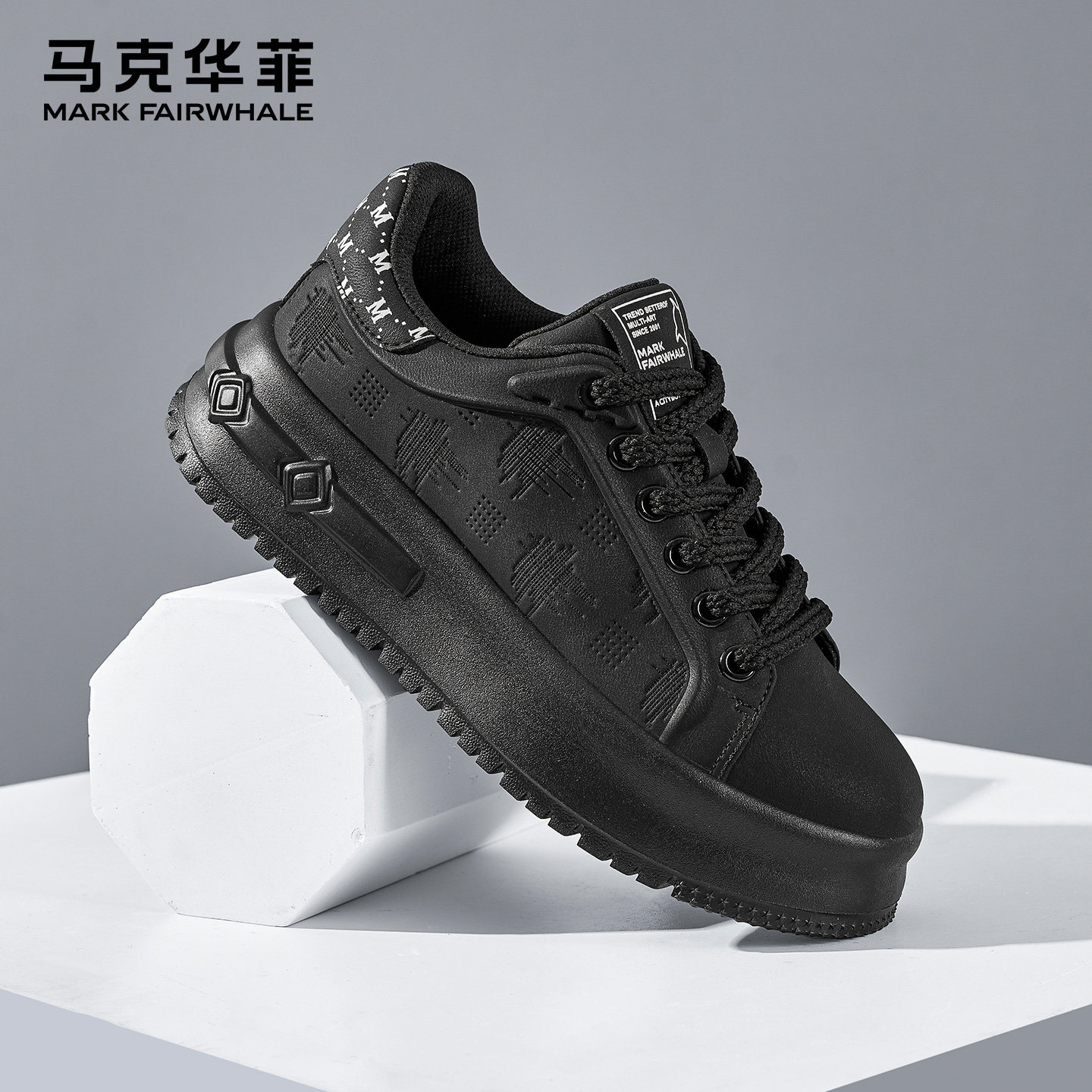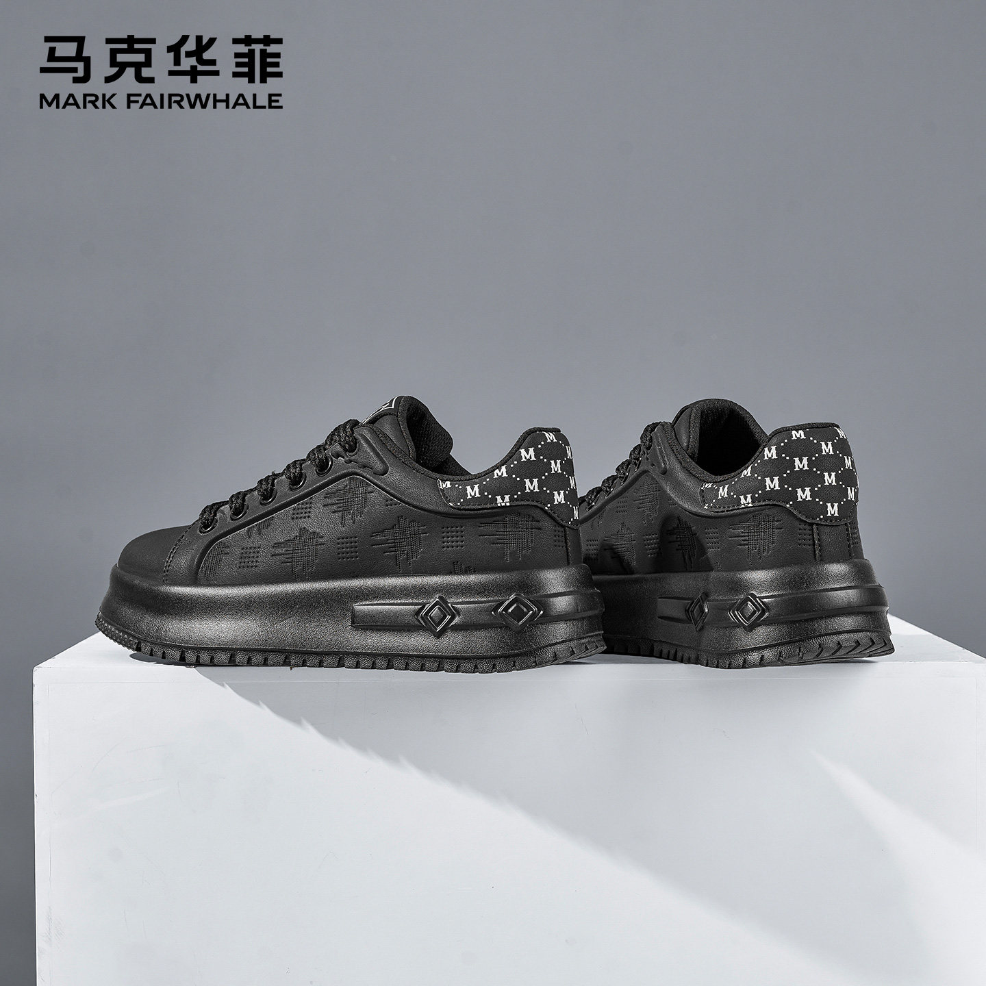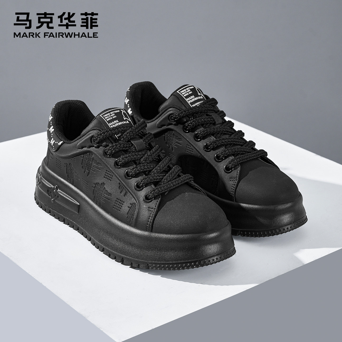 马克华菲男鞋2026新款男士黑色厚底休闲板鞋男款潮流百搭增高鞋子