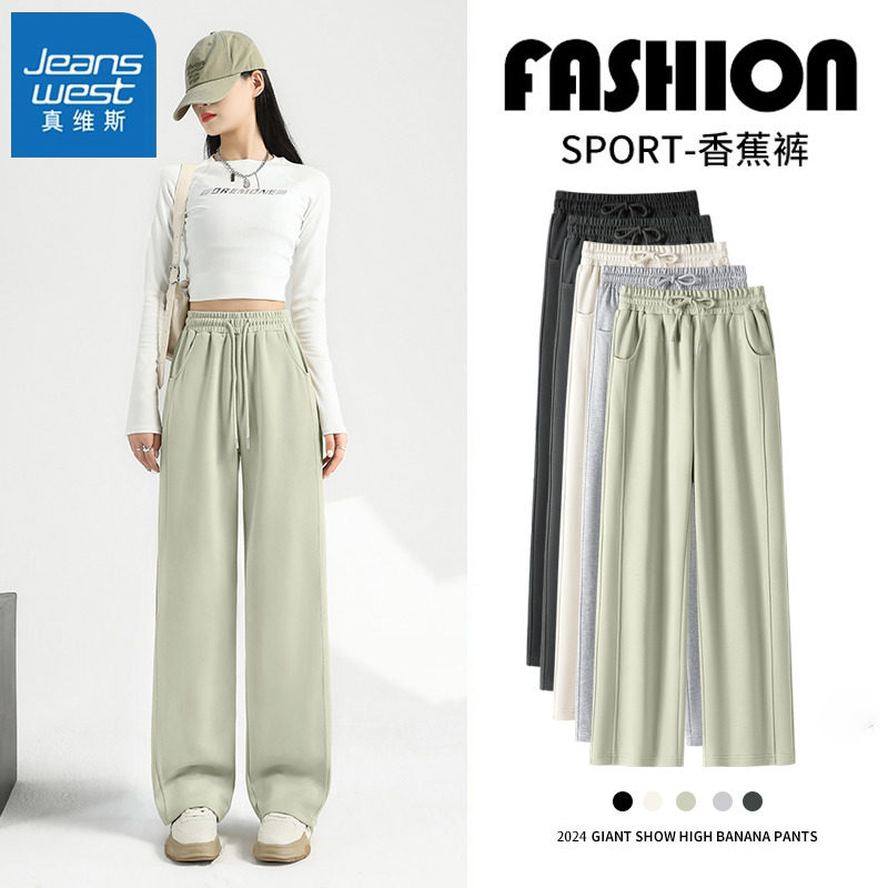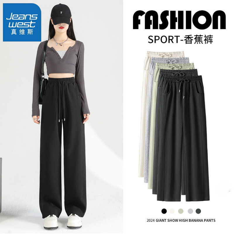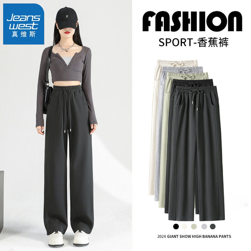 KMV真维斯灰色运动裤女春秋款2025新款休闲小个子卫裤香蕉阔腿裤