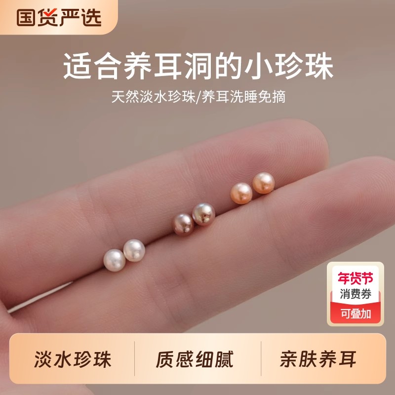 S999纯银淡水珍珠耳钉防堵针养耳洞耳骨钉轻奢高级感耳环百搭耳饰