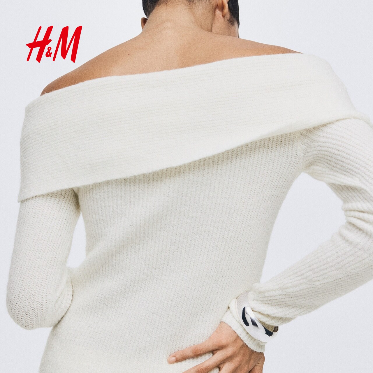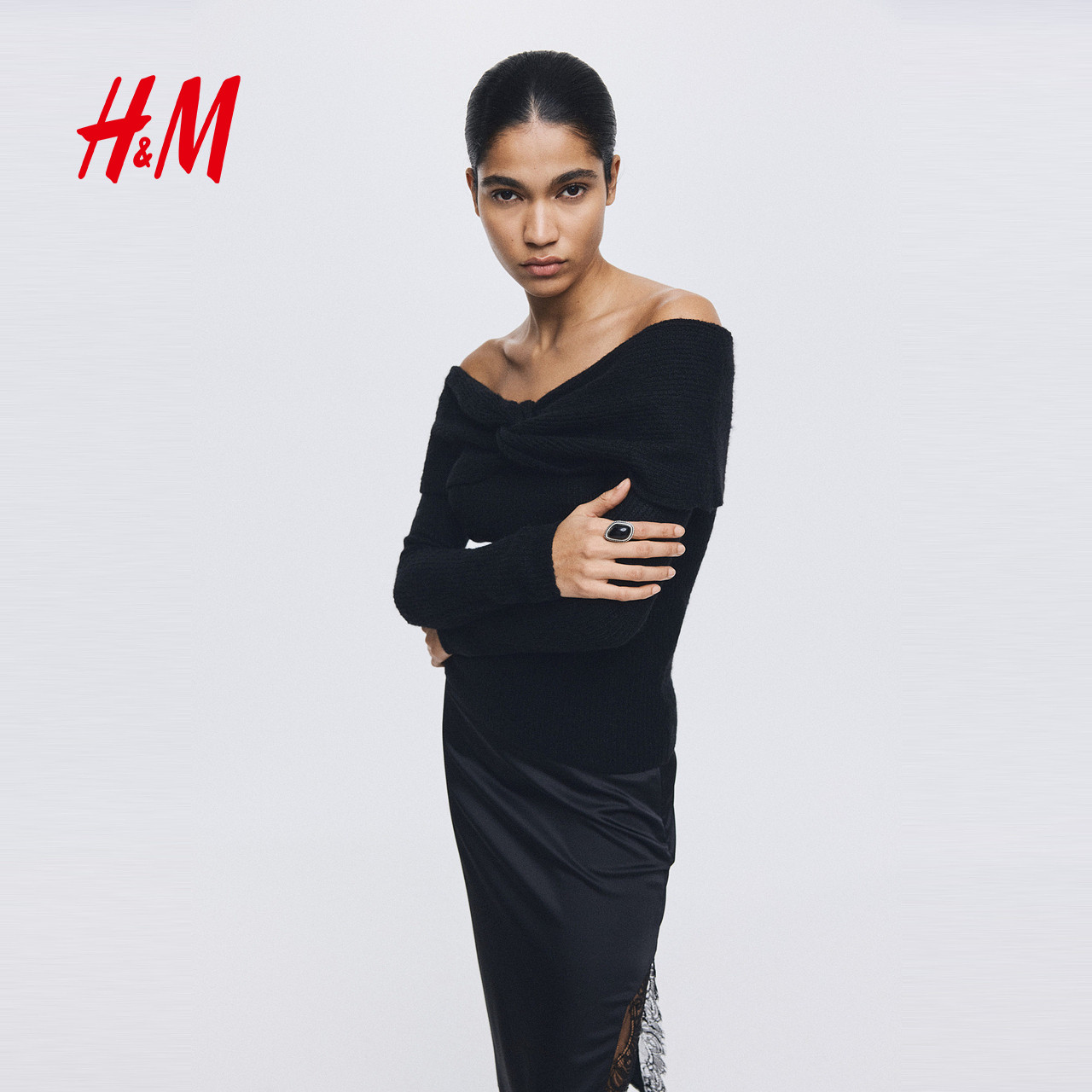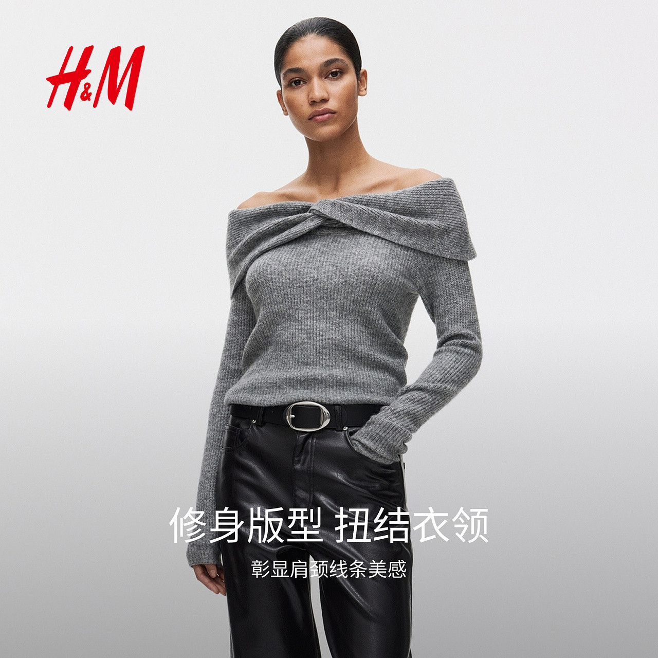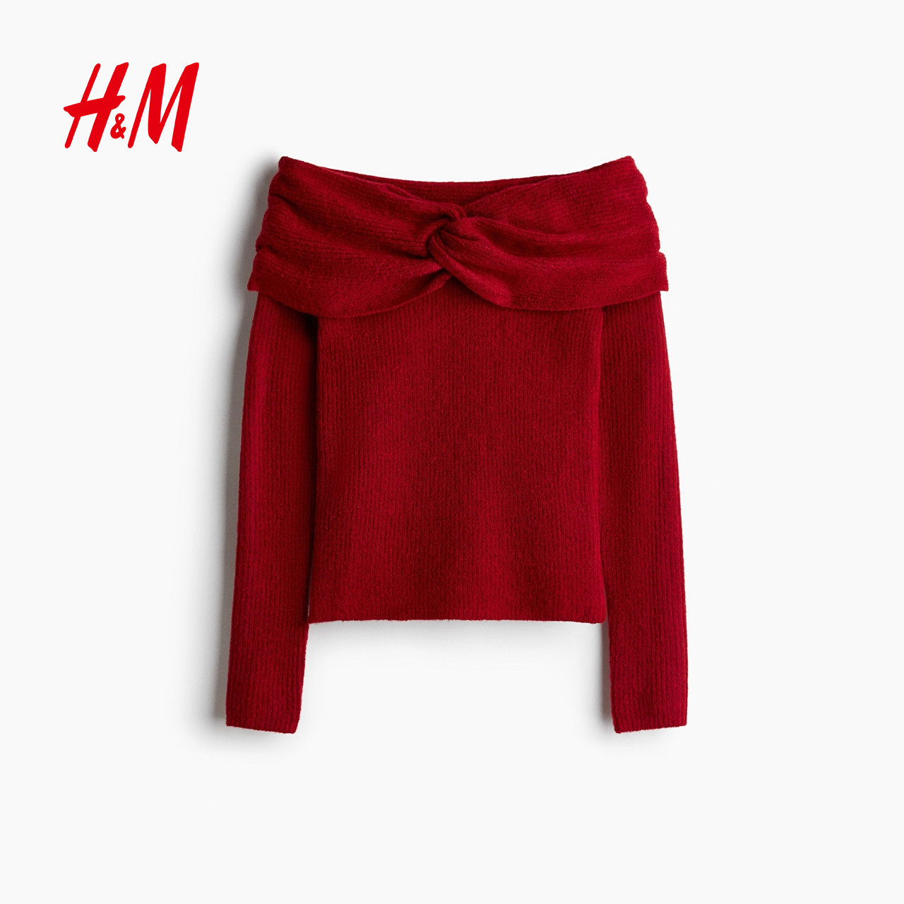 HM女装毛针织衫2025冬新款红色内搭冬日千金感穿搭打底衫1310812
