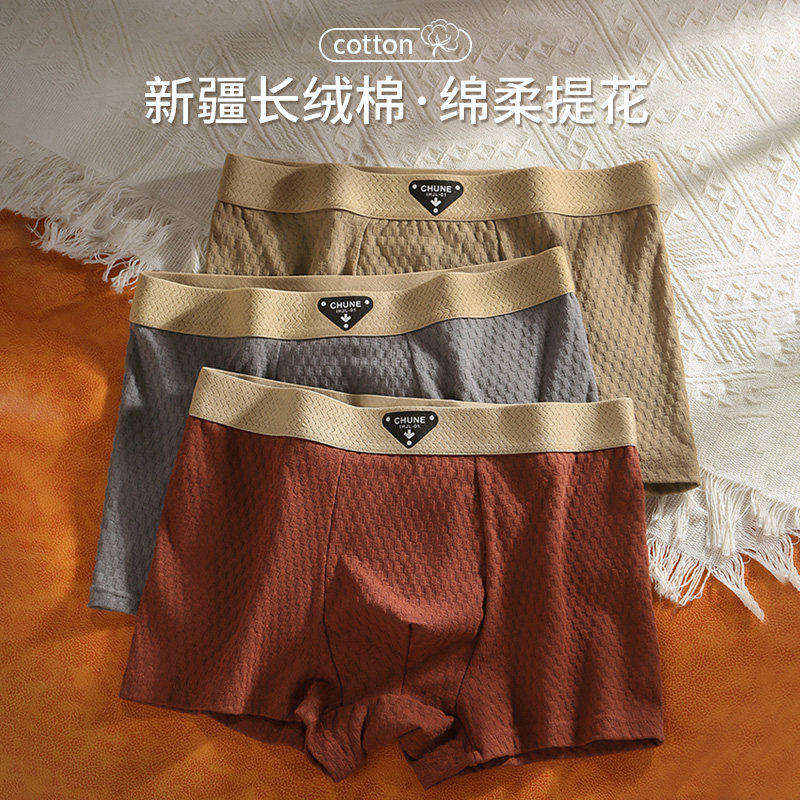 日本无印优品纯棉内裤男新疆长绒棉无缝全棉纯色透气平角裤中腰