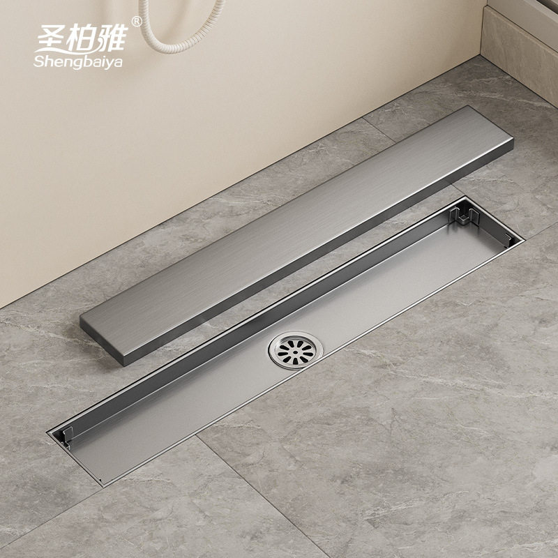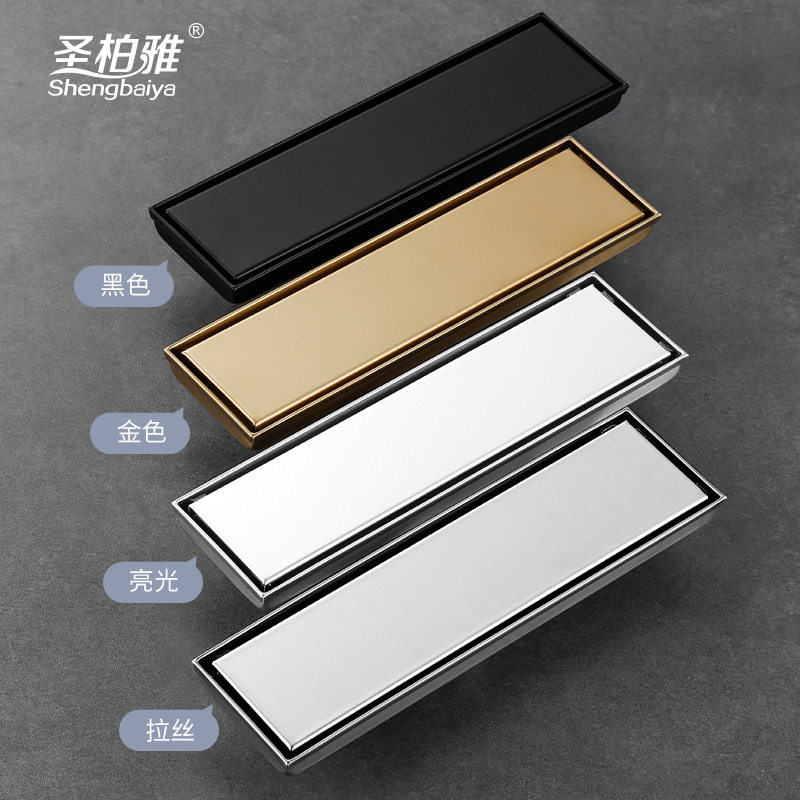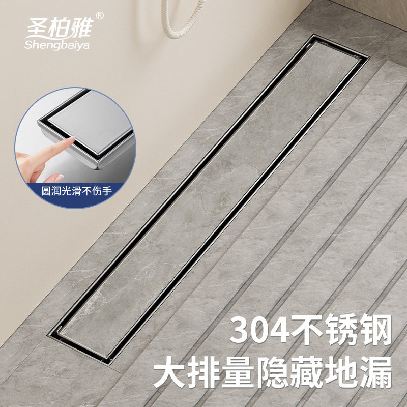 亮光304不锈钢隐藏长地漏 工程酒店淋浴房长条型防臭隐形地漏跨境