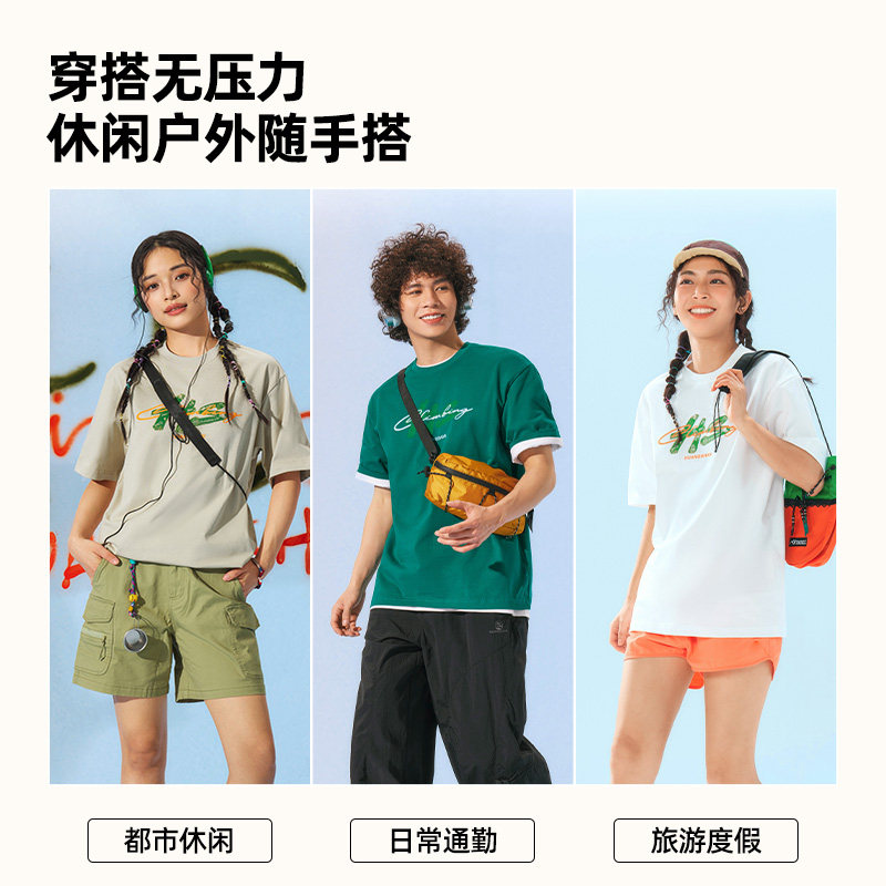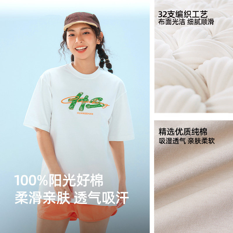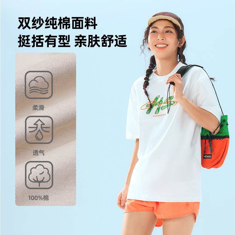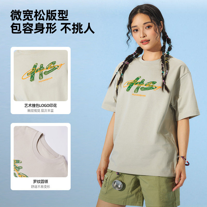 黄山联名骆驼26年新款印花短袖T恤男女同款纯棉宽松休闲圆领上衣