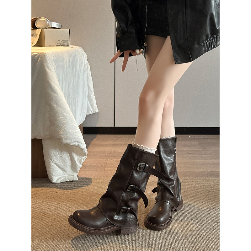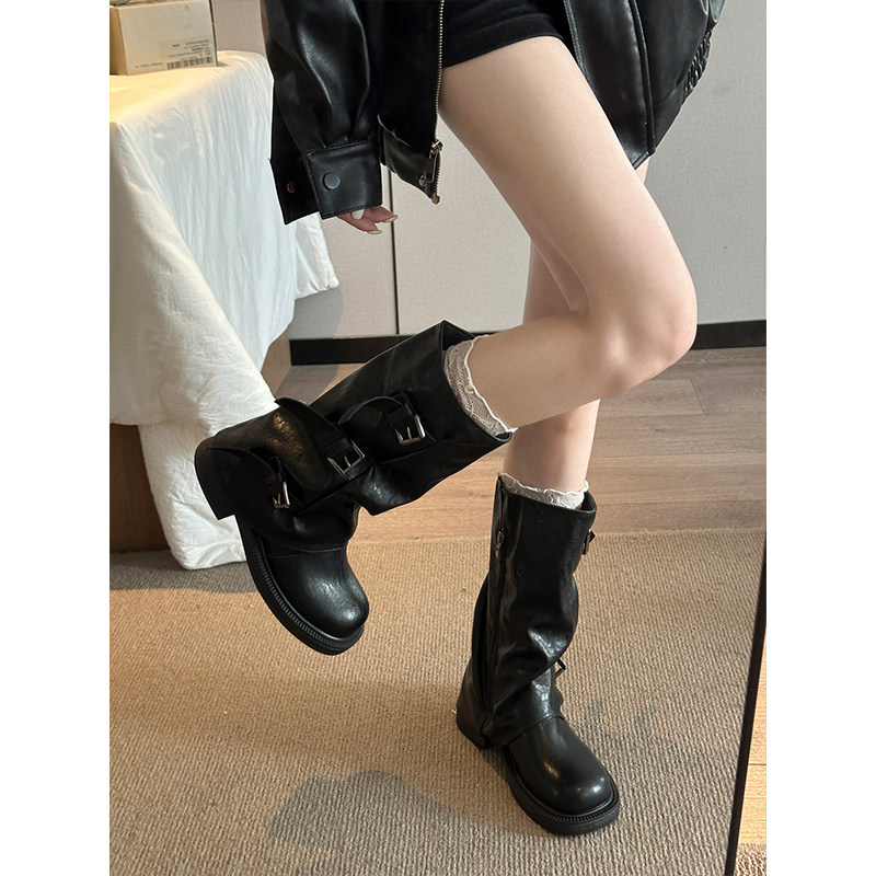 复古裤管靴长筒靴女2025秋季新款高筒堆堆靴辣妹英伦风中筒骑士靴