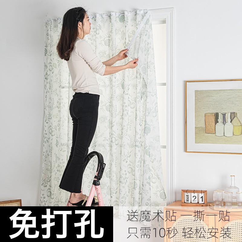 窗帘免打孔安装阳台卧室隔断自粘式防晒魔术贴窗纱透光不透人遮光