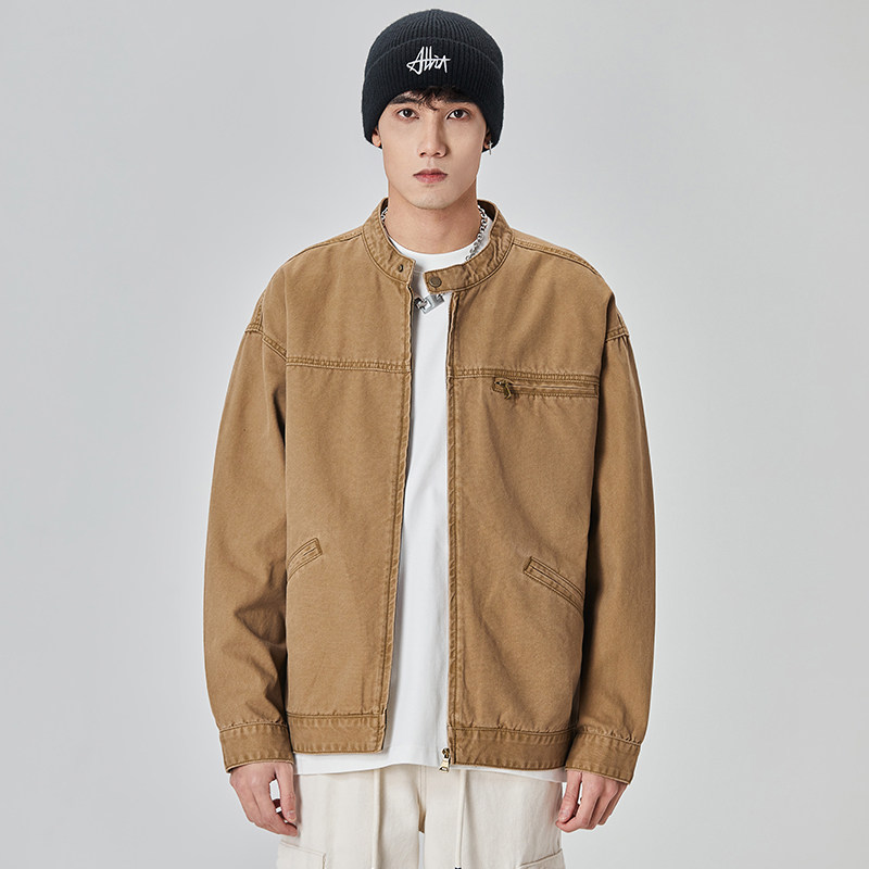 Wassup Shark美式牛仔外套男春秋季复古工装休闲夹克百搭翻领上衣