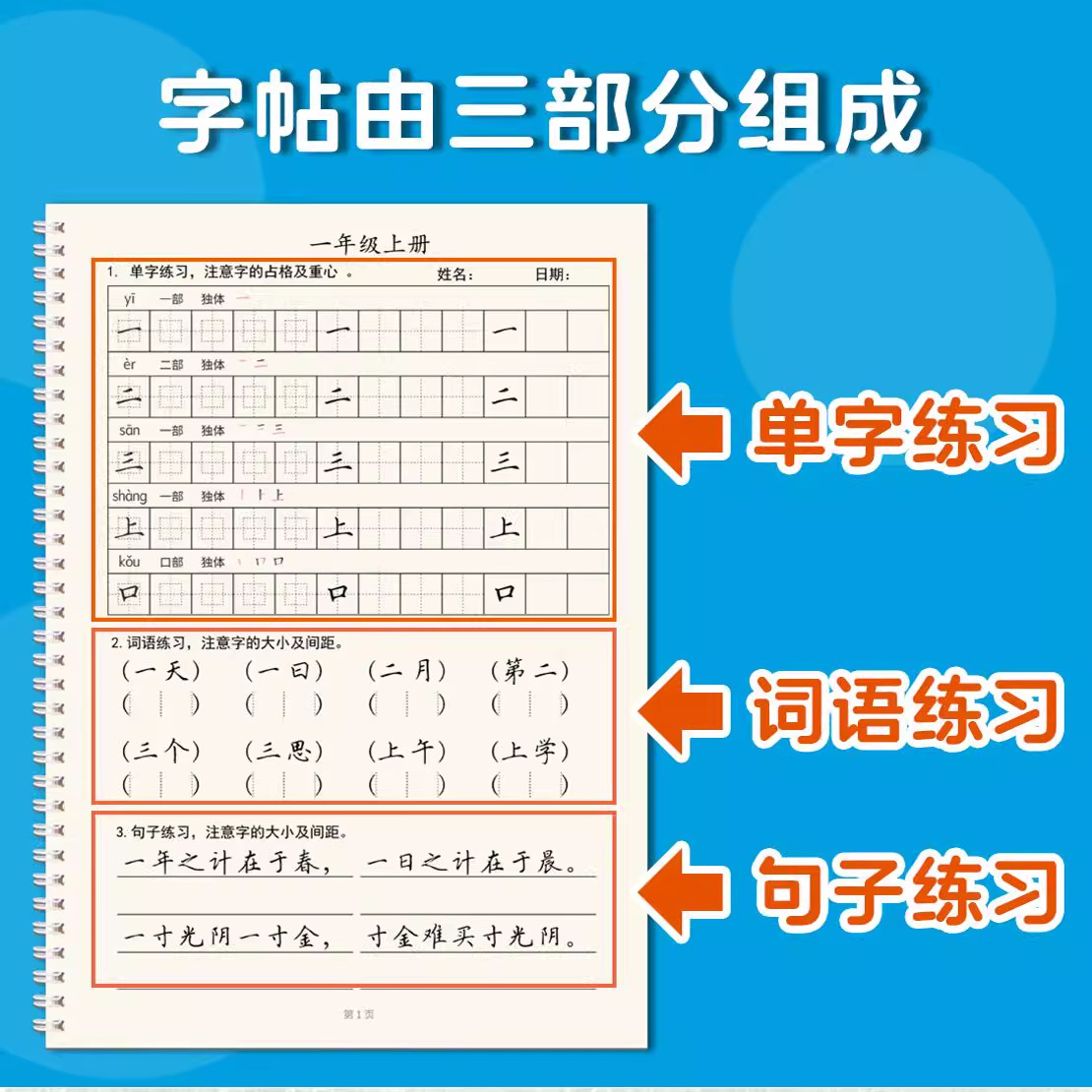 小学一二三四五六年级上册下册写字表综合组词练字帖笔画顺描红本一类字语文同步生字练习写字簿部编人教版
