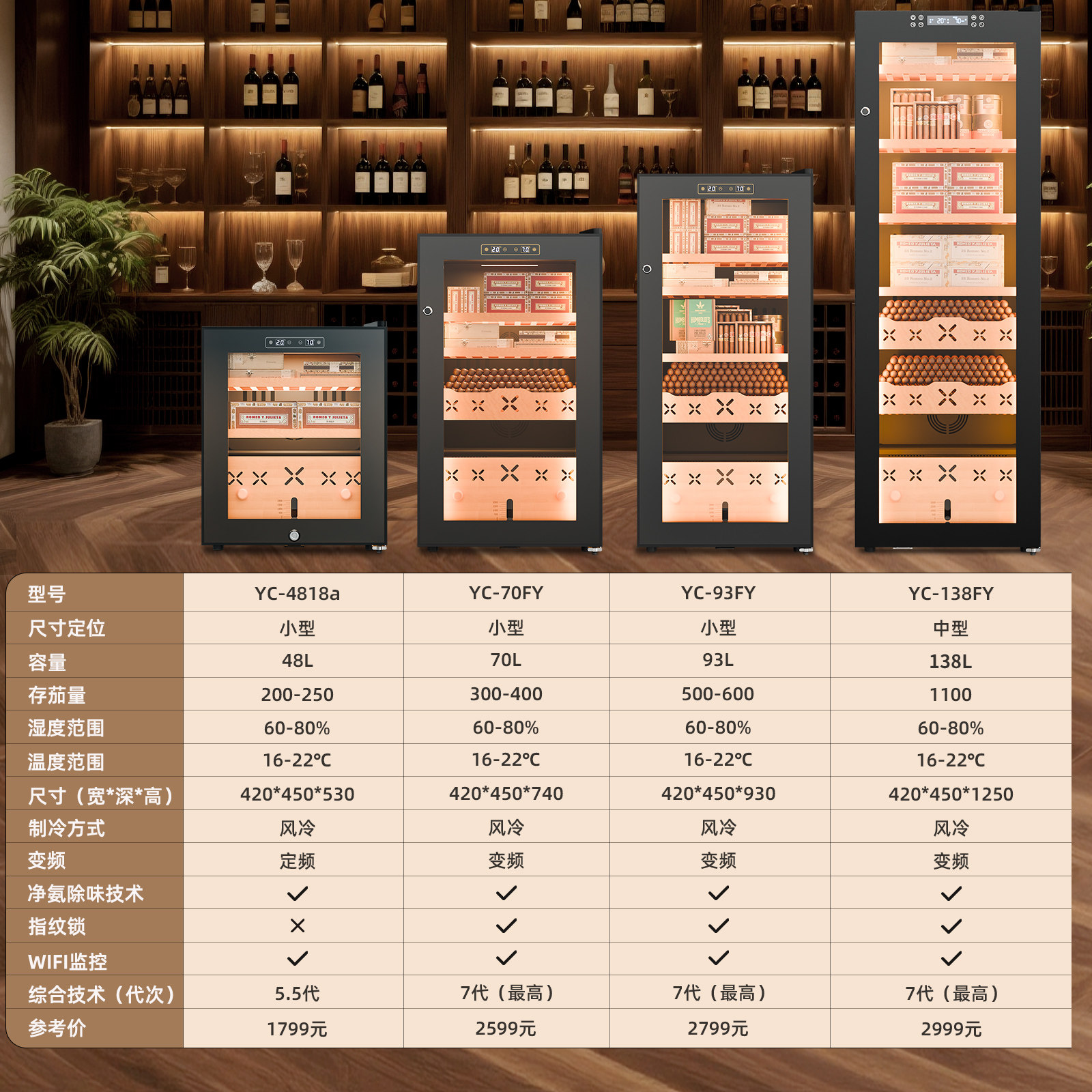 Bacchus/芭克斯 雪茄柜恒温恒湿风冷裸养雪松木恒温红酒雪茄