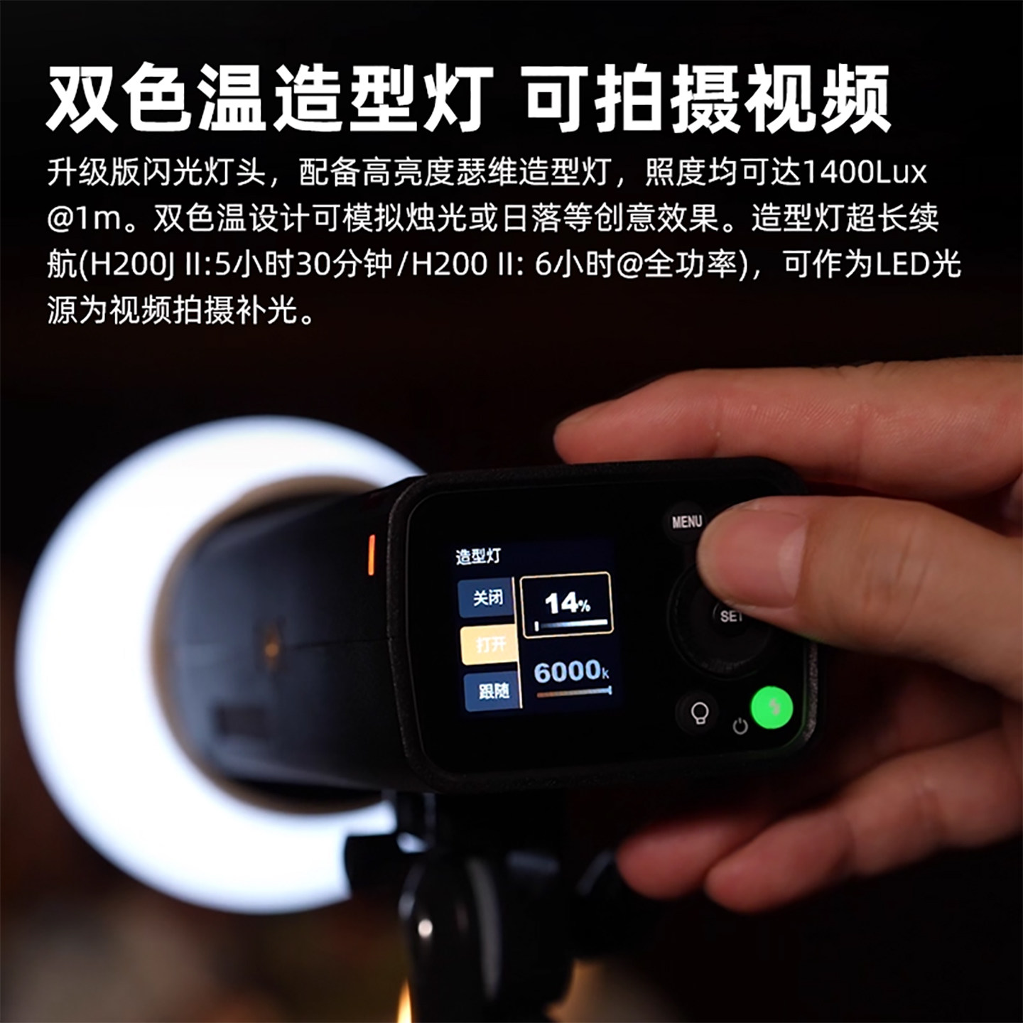 神牛ad400proII外拍灯400W TTL高速闪光灯一体式户外灯内置2.4G摄影外拍灯外景灯锂电池户外便携高端外拍闪光