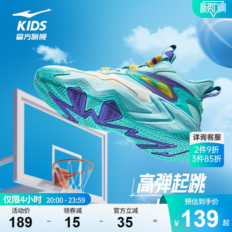 奇袭|鸿星尔克童鞋儿童实战篮球鞋男童网面运动鞋青少年防滑鞋子