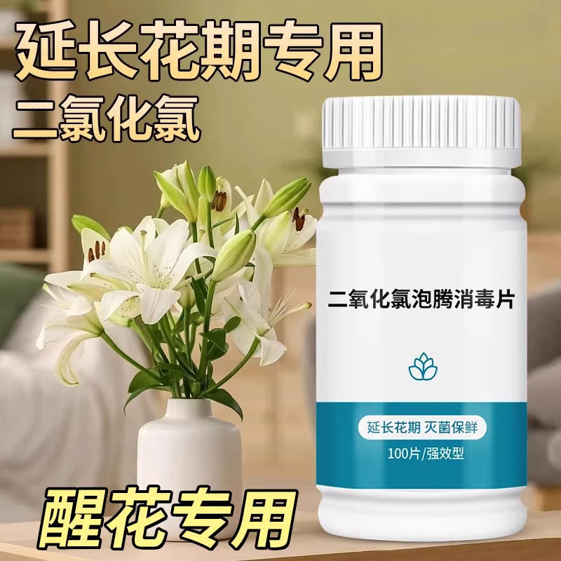 二氧化氯84鲜花泡腾片消毒片插花鲜花绿植专用保鲜剂除臭杀菌净水
