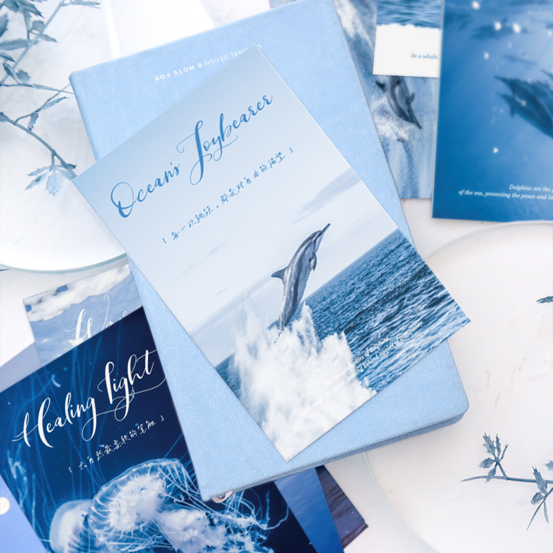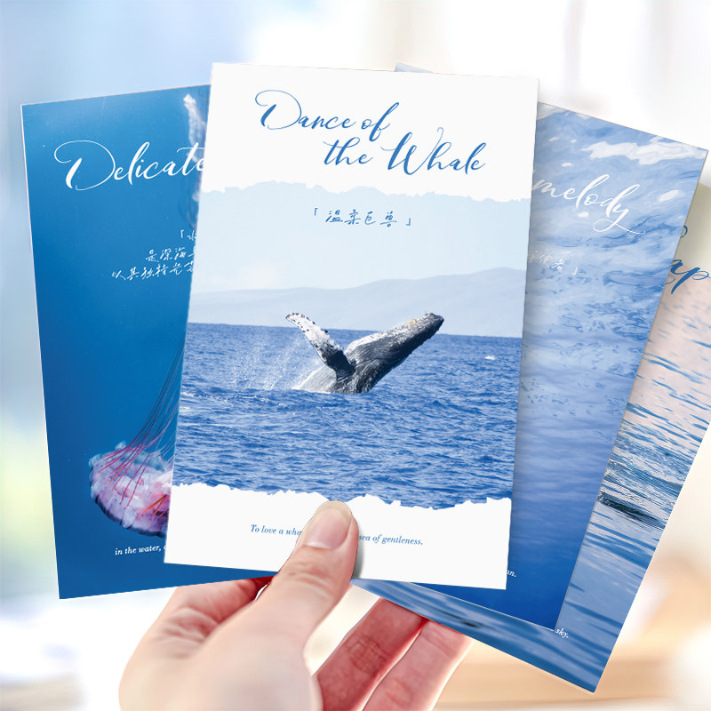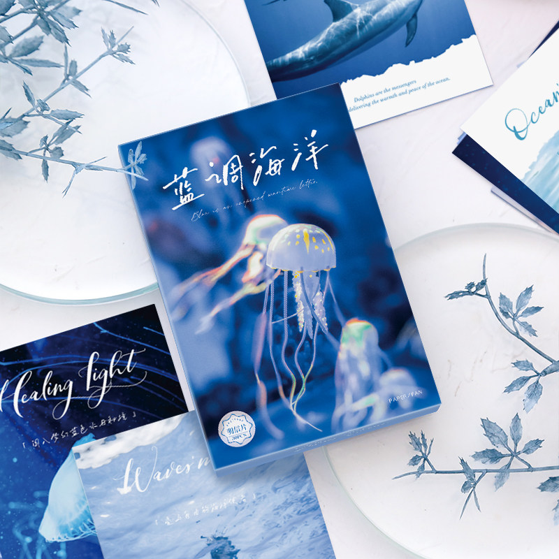 蓝色系海洋风景明信片大海水母装饰卡片高级感手写留言祝福贺卡