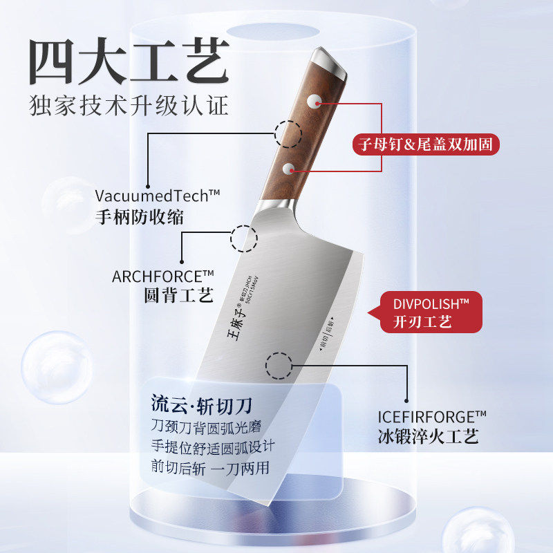王麻子菜刀家用切片切肉切菜刀锻打锋利厨房刀具斩切两用官方旗舰