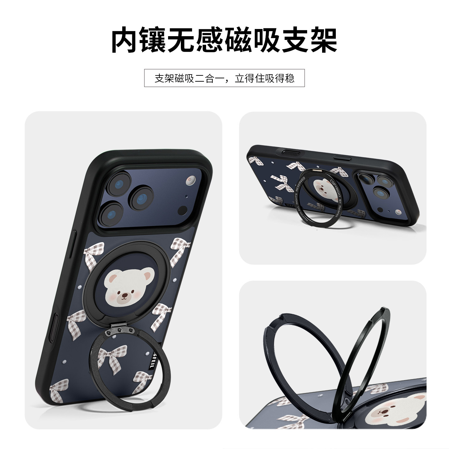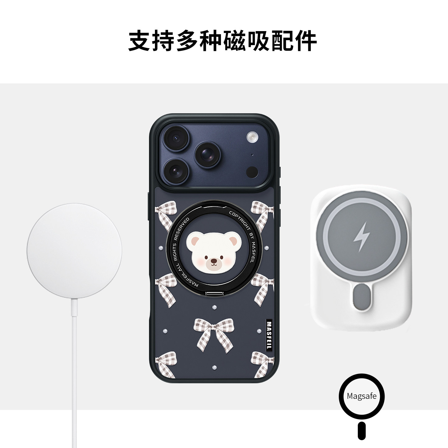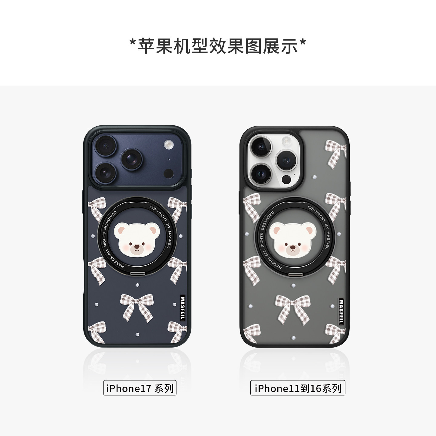 MASFEIL × 蝴蝶结熊仔适用苹果17promax手机壳iPhone16pro新款磁吸带支架ip15全包Fo5支点高级感17可爱套