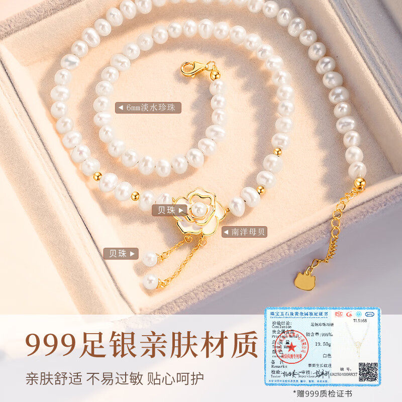 999足银山茶花淡水珍珠项链女款2025新款轻奢颈链生日礼物送女友