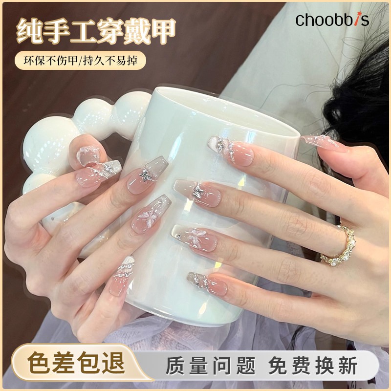 猫眼纯手工穿戴甲中长高级感美甲2025年新款新娘结婚拍婚纱照显白