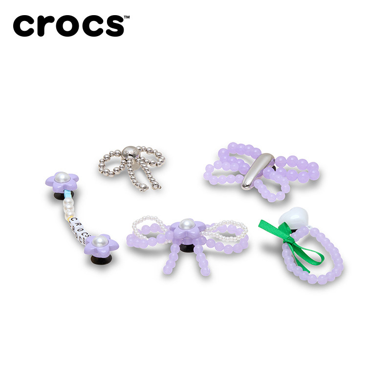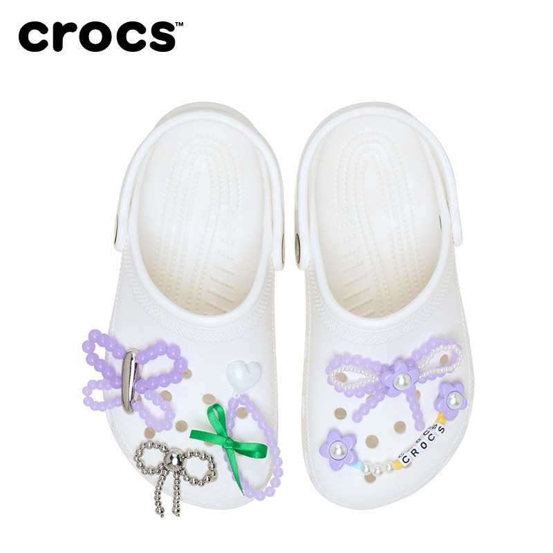 白鹿同款Crocs卡骆驰智必星配件洞洞鞋花 质感银紫串珠五件套