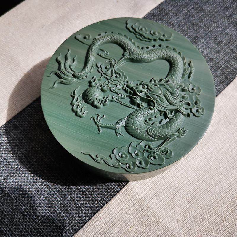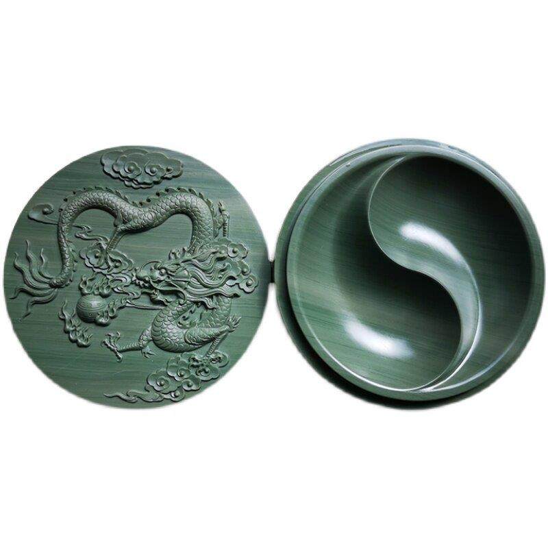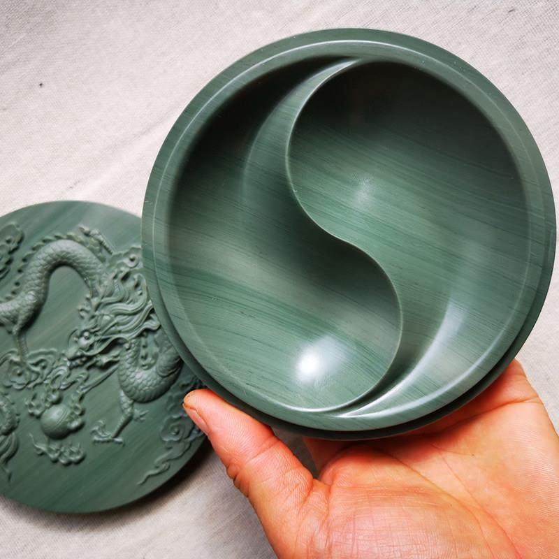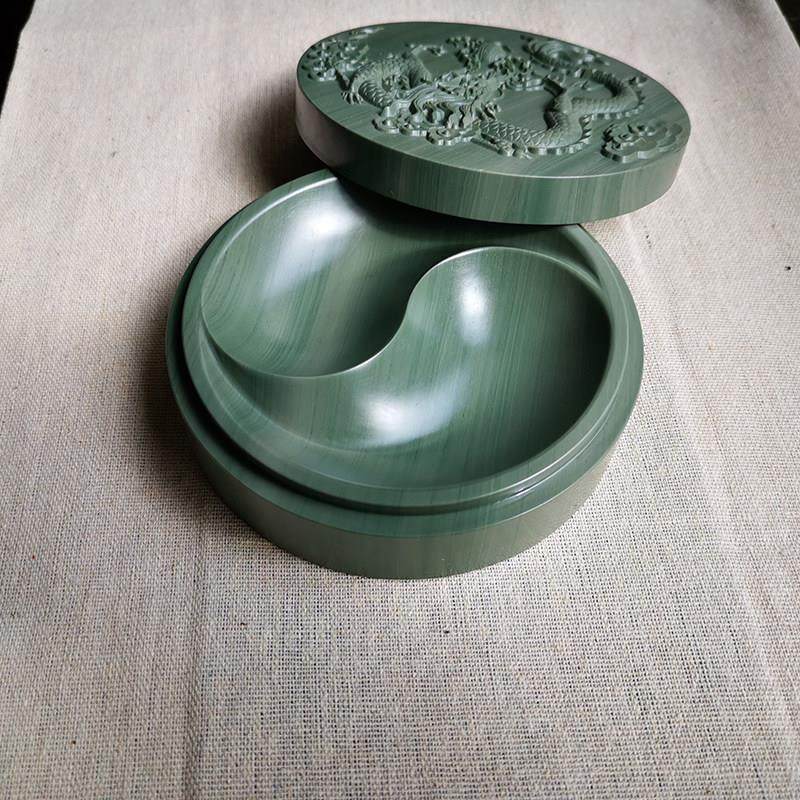 松花砚台 仙人洞老坑松花石砚 太极砚 墨盒 带盖子 文房四宝