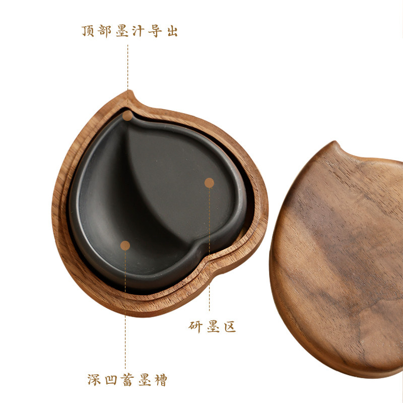 念桃龙尾石砚台桃子砚台宋坑小楷书法专用可原石笔墨纸砚文房四宝徽墨毛笔墨砚墨台墨条摆件墨盒桃之夭夭礼物
