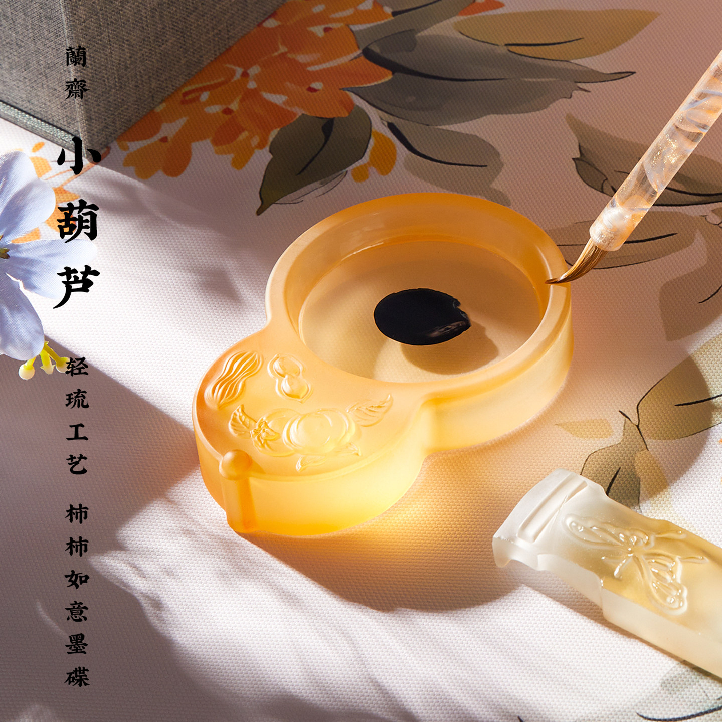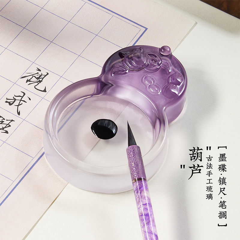笔墨纸砚写毛笔字墨蝶墨盘笔搁墨汁笔舔砚台镇尺文房四宝笔洗书法用品琉璃水晶玻璃墨碟墨盒国风送礼雅物