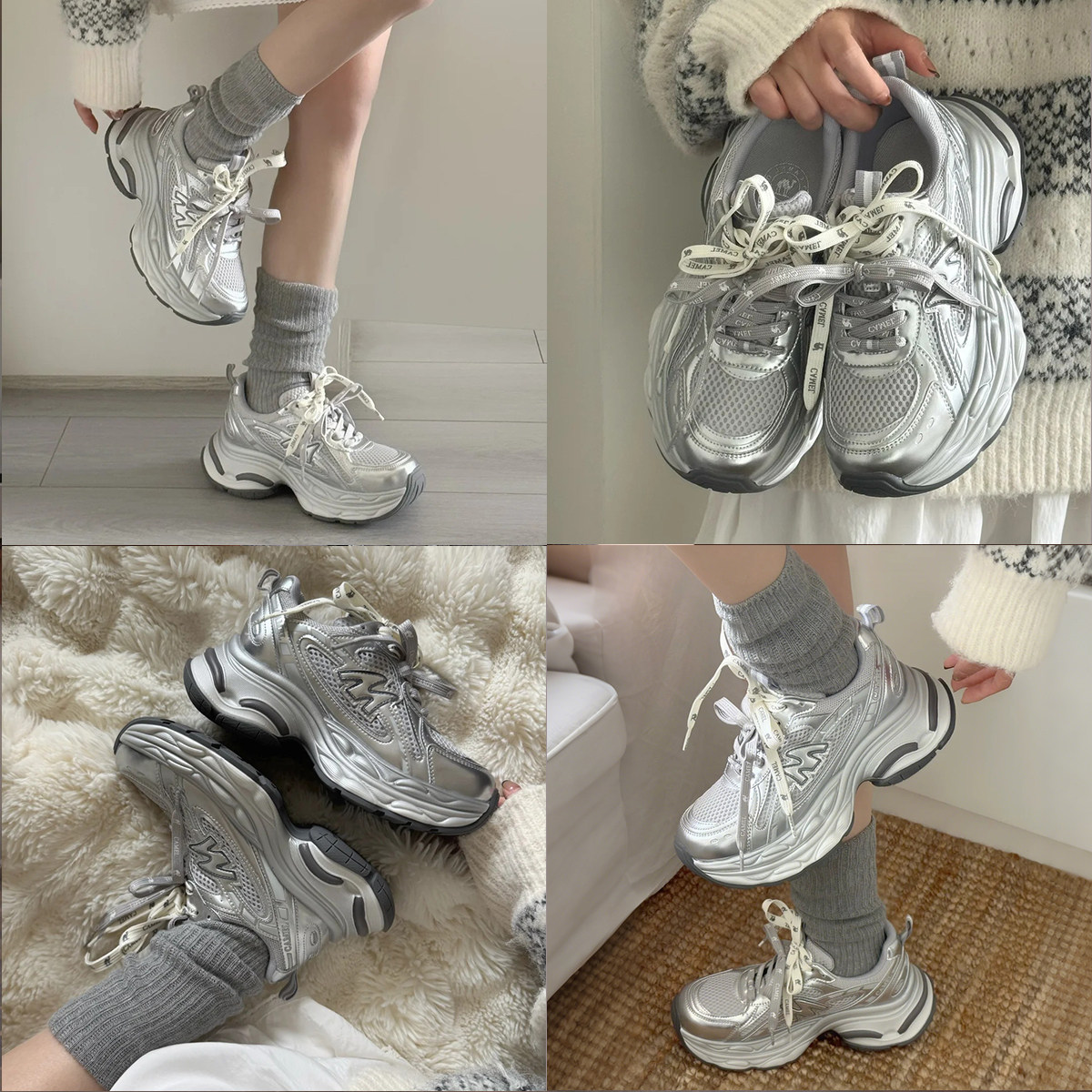 厚底老爹鞋女2025女款新款秋冬保暖加绒女鞋银色内增高休闲运动鞋