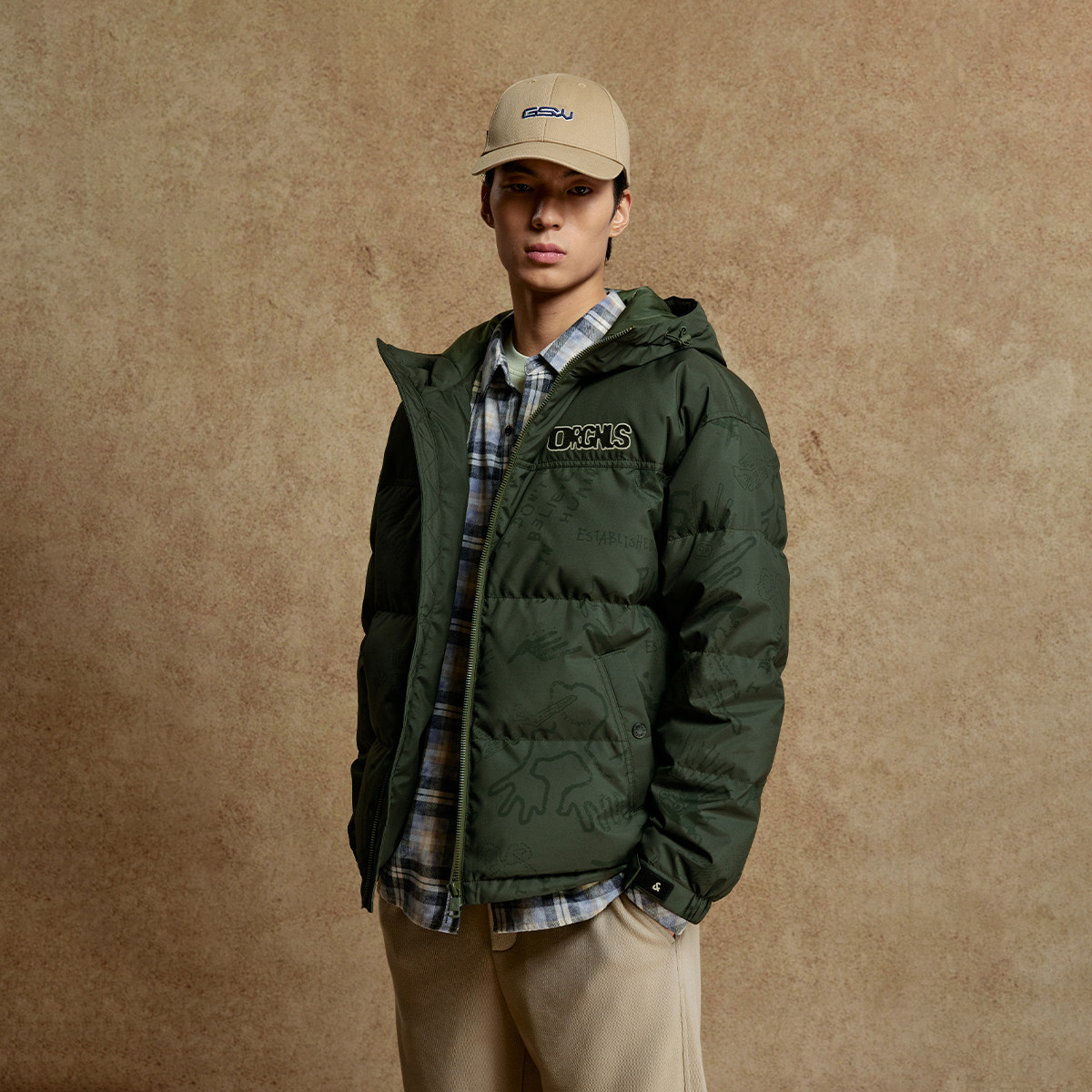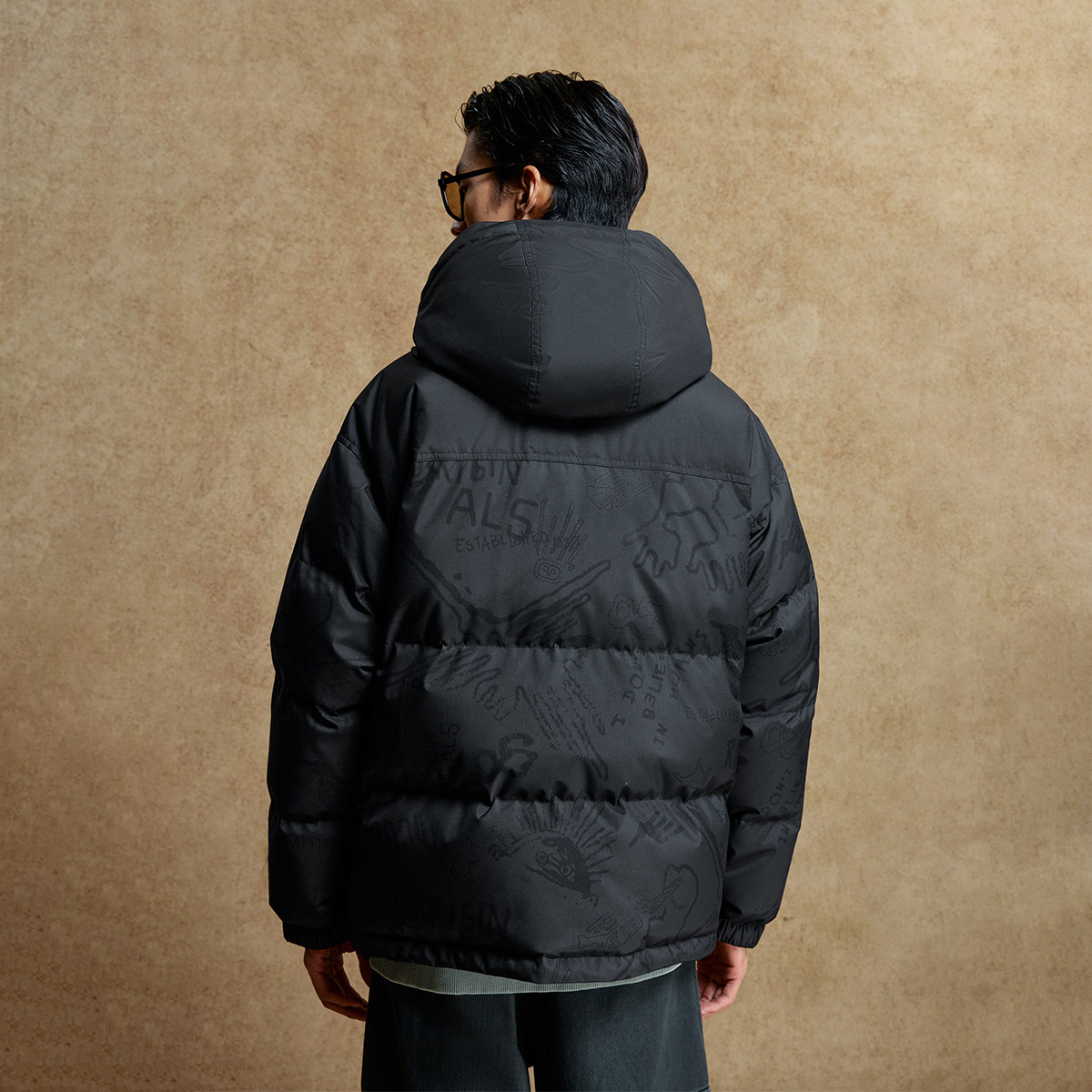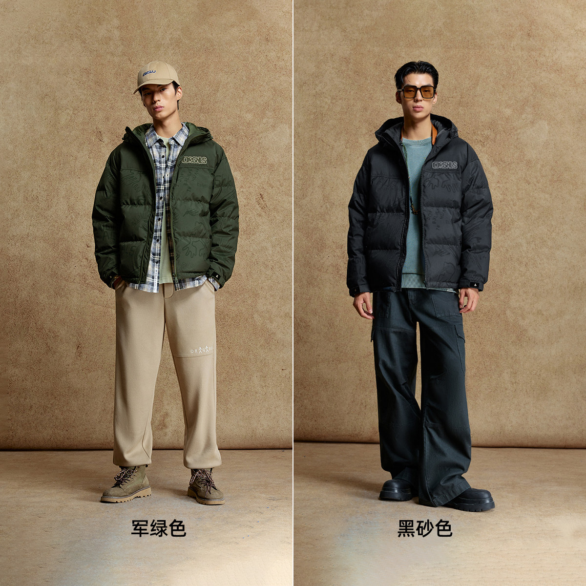 杰克琼斯男装士羽绒服2025年新款时尚刺绣抽绳连帽廓形保暖外套