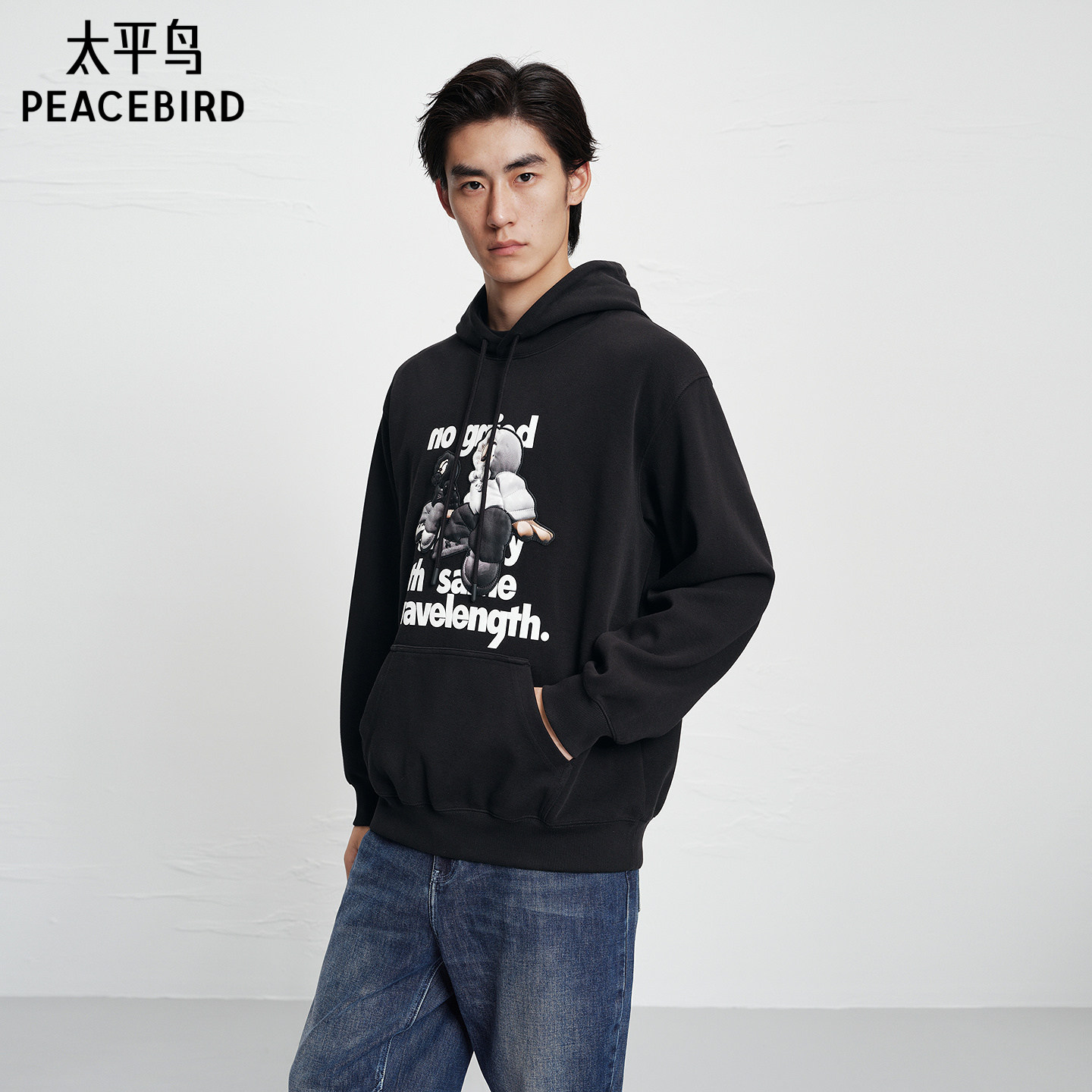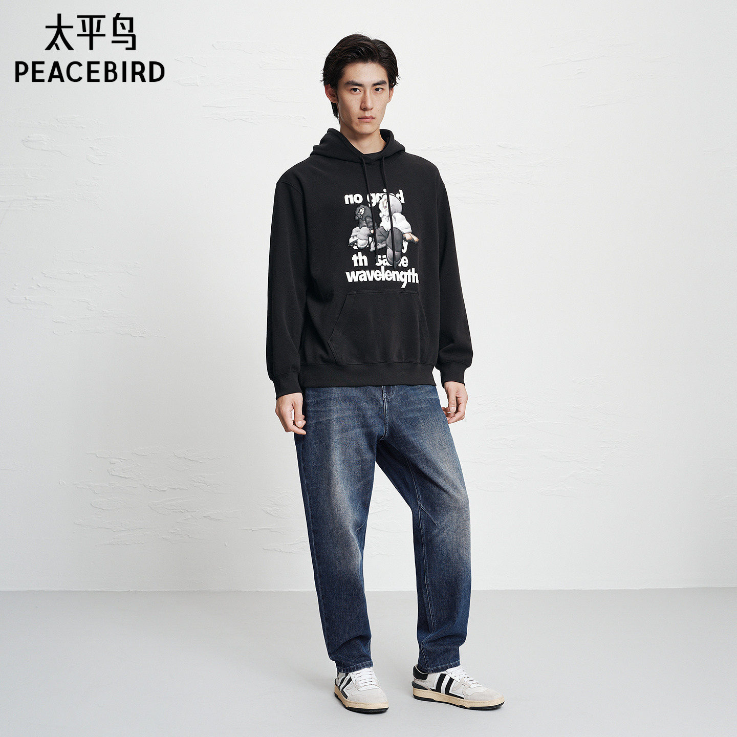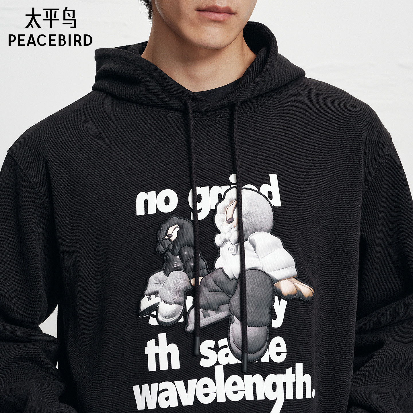 太平鸟男装 潮流美式后背印花卫衣秋季时尚宽松连帽上衣