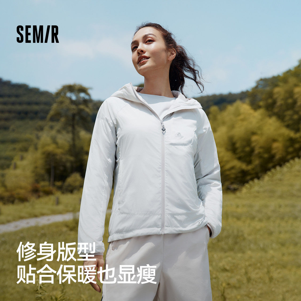森马棉服女三防户外插肩袖修身连帽2025新款冬季发热抑菌轻薄内搭