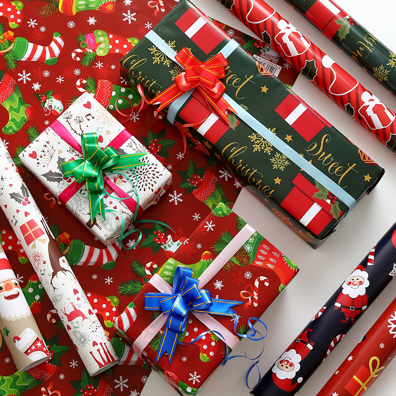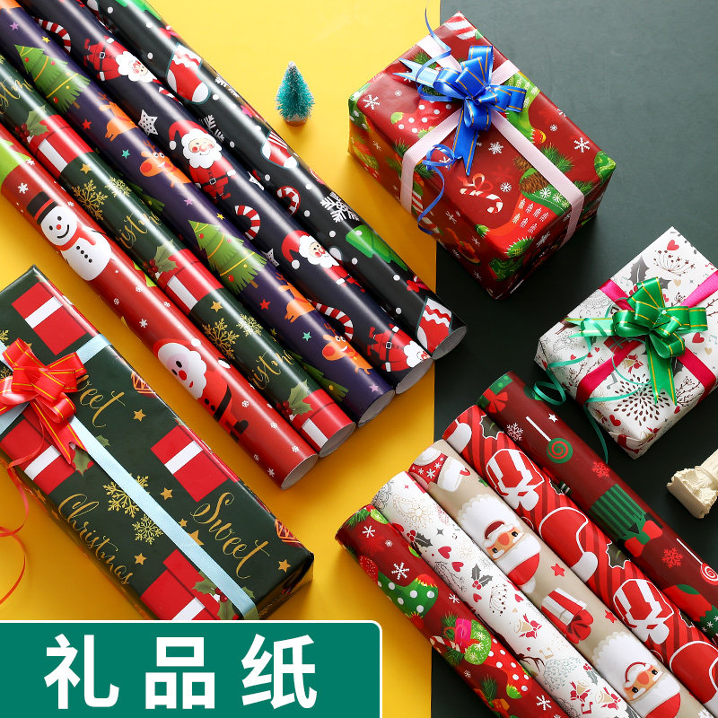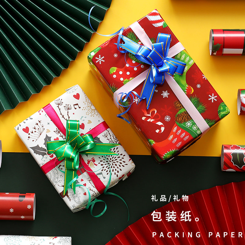 圣诞节包装纸ins风包书纸大张卡通平安夜圣诞礼品纸批发鞋盒生日礼物装饰纸创意材料diy礼盒精美大尺寸超大