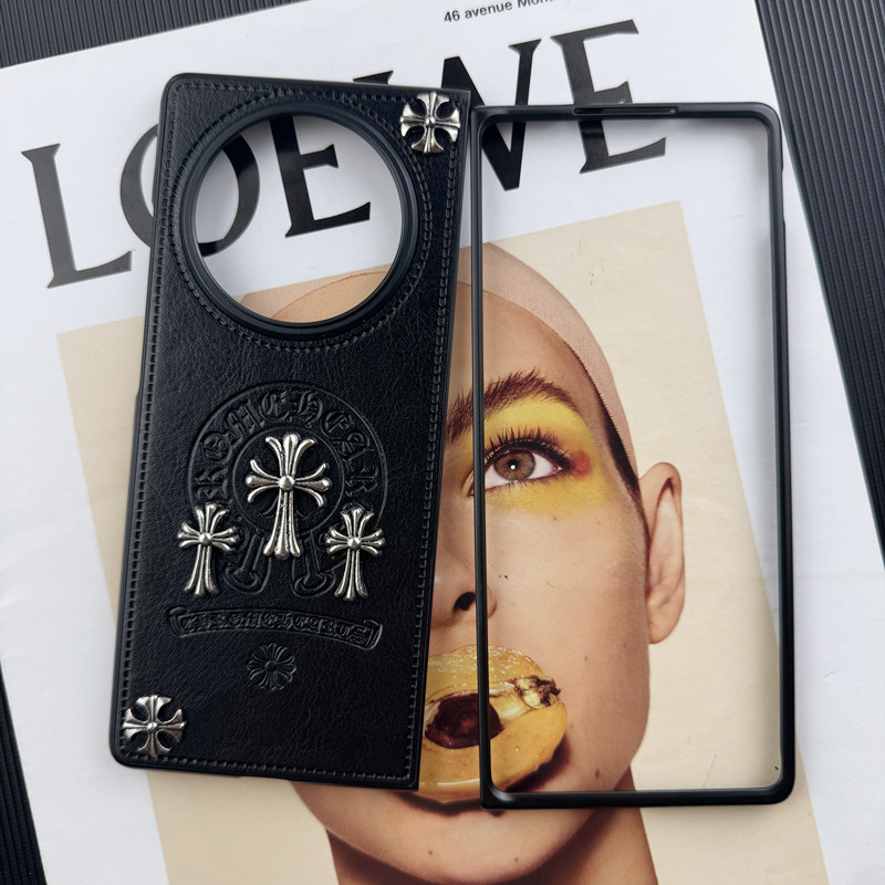 适用vivo XFold3pro手机壳新款折叠屏xfold5保护套复古风皮质立体五金十字架高档网红创意小众感男女潮牌外壳