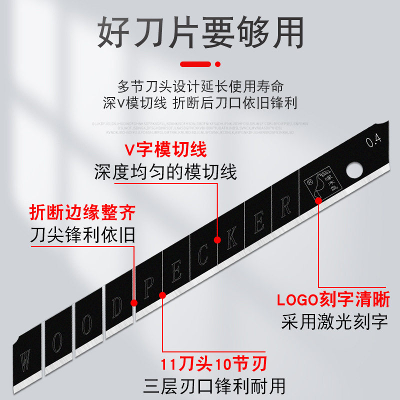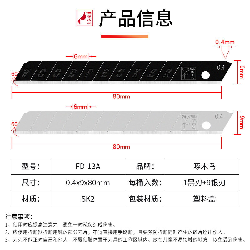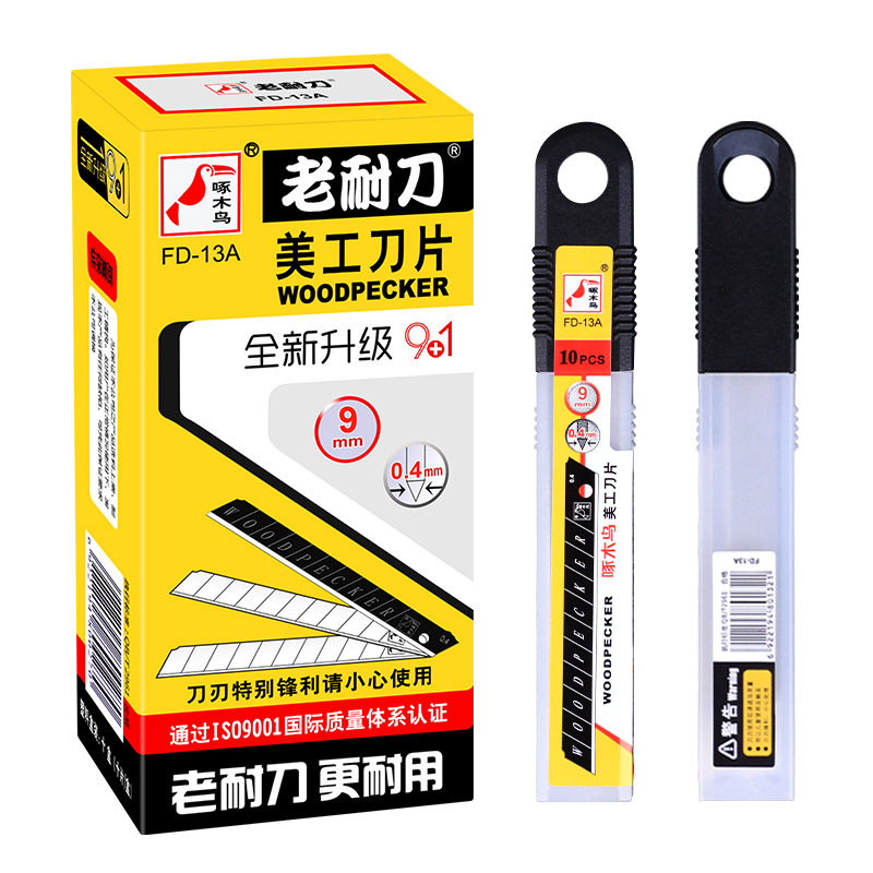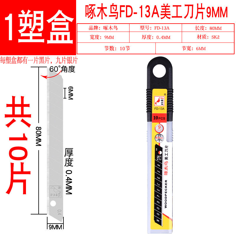 啄木鸟刀片FD-13A壁纸刀片美工刀片墙纸刀片墙布壁布刀片小号9MM多功能耐用锋利10片里面9银1黑包邮小号美工