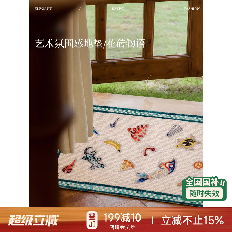 【国补再减15%】蜡笔派花砖物语地垫客厅入户脚垫法式防滑脚垫