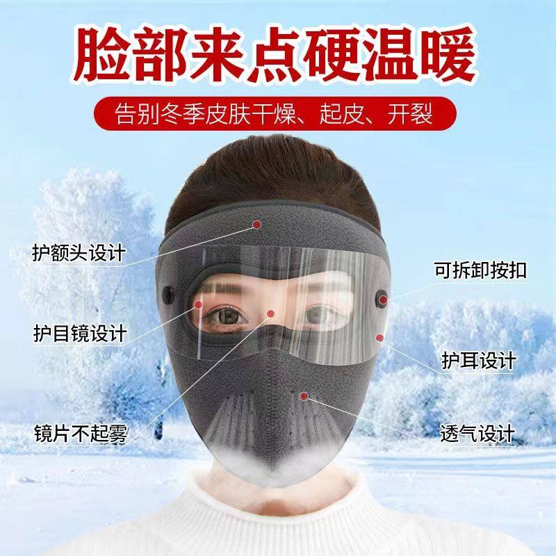 口罩女男面部保暖防寒加厚棉透气护颈护耳罩骑行护全脸面罩秋冬季