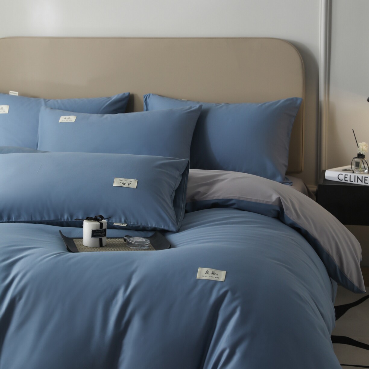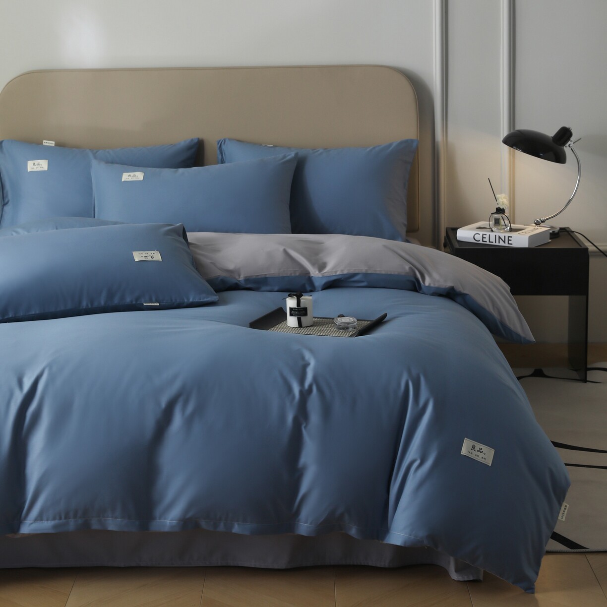 A类轻奢简约全棉拼色四件套简纯棉纯色床品被套学生宿舍家居卧室