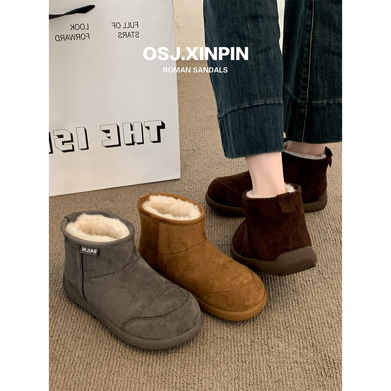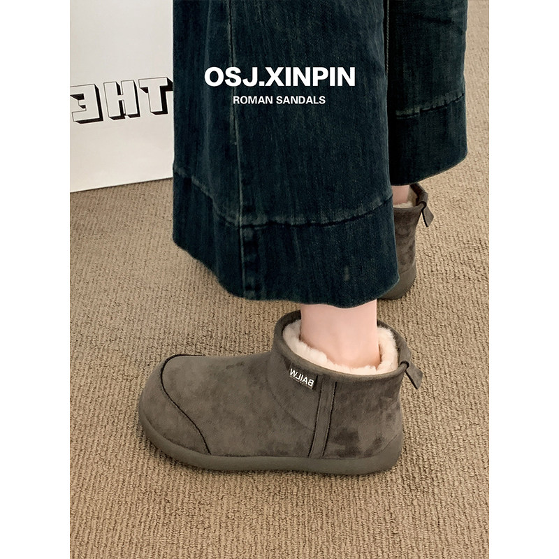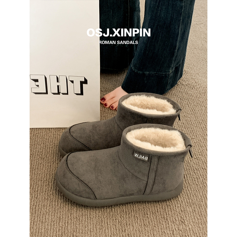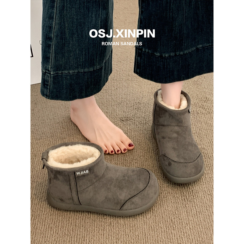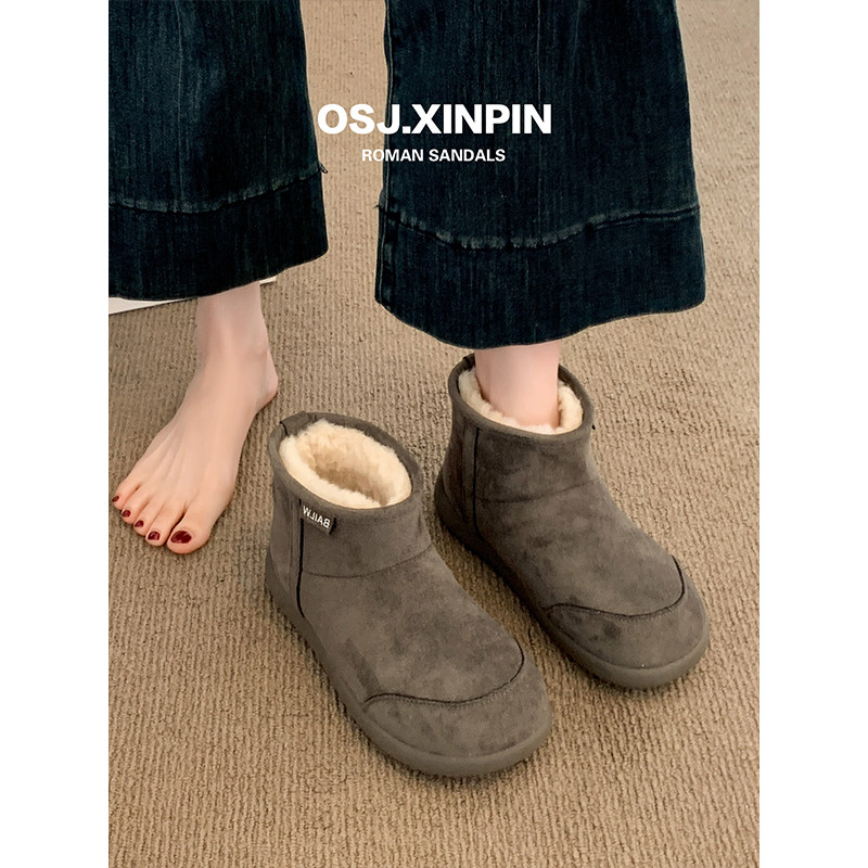 平底灰色雪地靴女款2025冬季新款加绒加厚雪地棉靴子保暖棉鞋防水