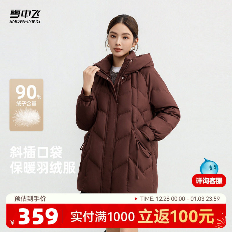 雪中飞2025冬新款羽绒服女士中款简约时尚高级感美拉德气质新中式