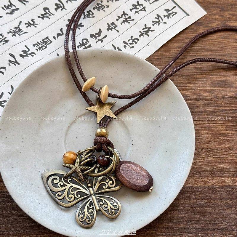 新中式民族风蝴蝶项链女波西米亚复古禅意毛衣链小众设计感脖颈链