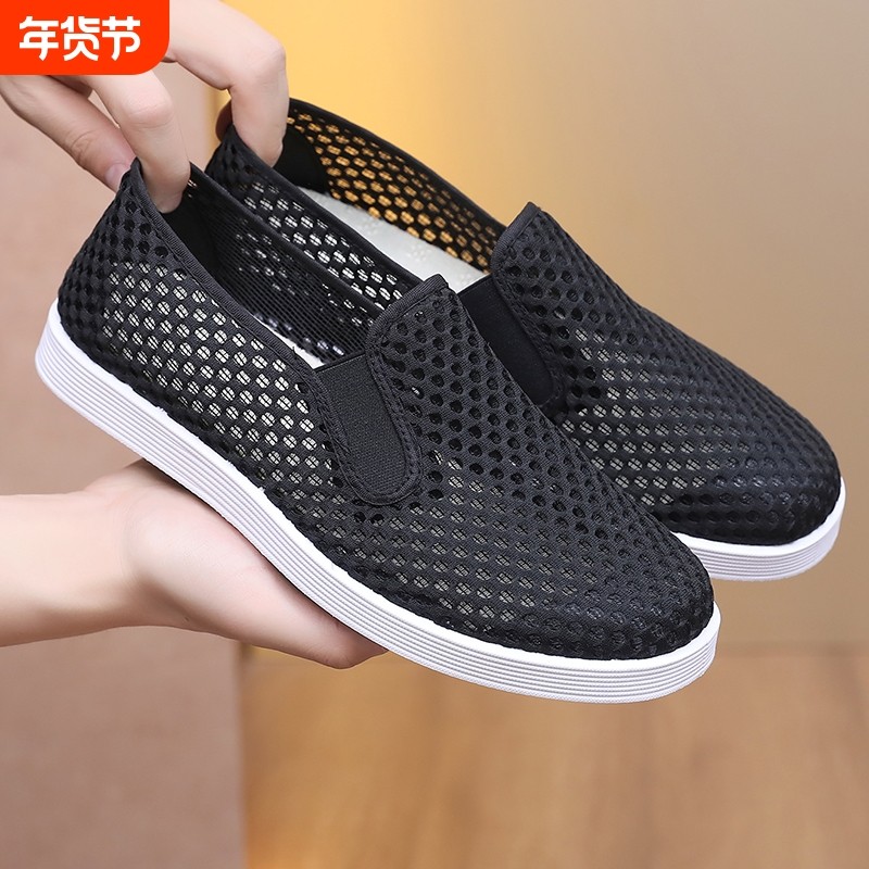 老北京布鞋男网鞋夏季薄款透气软底休闲爸爸网面中老年父亲鞋镂空