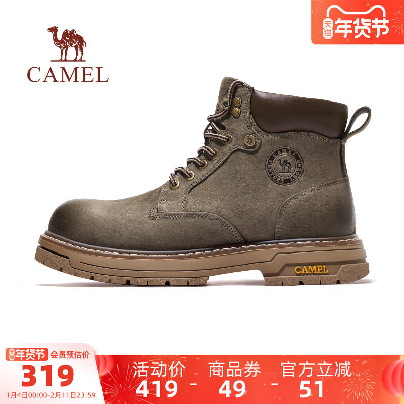 骆驼马丁靴男鞋工装加绒加厚保暖户外男款休闲中高帮时装靴子秋冬