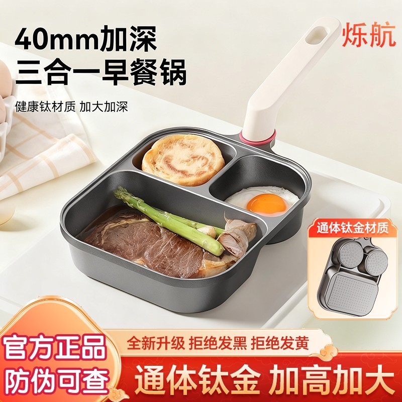 钛三合一早餐煎锅鸡蛋汉堡锅平底锅家用不粘锅煎蛋神器肉蛋堡锅具