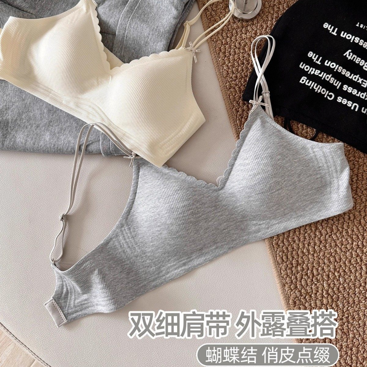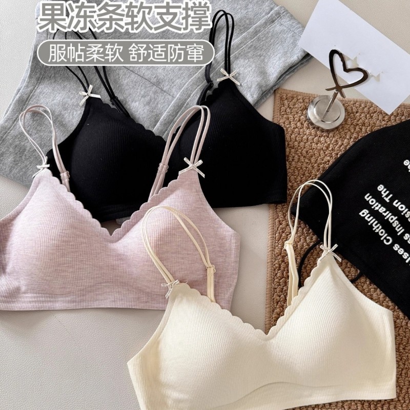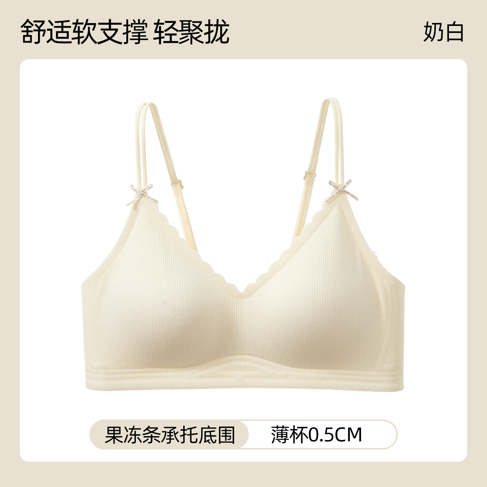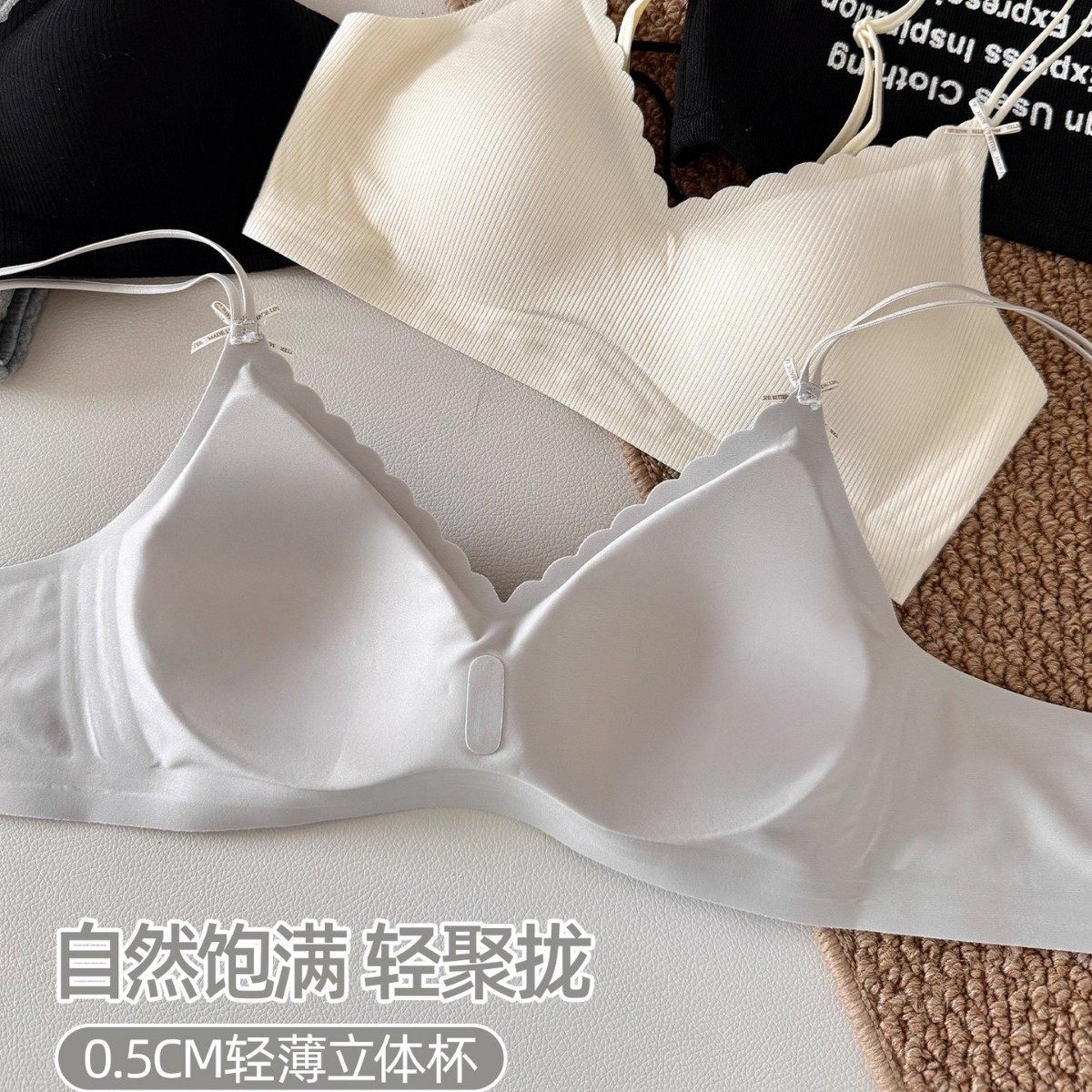 裸感无痕内衣女聚拢小胸无钢圈舒适果冻条软支撑防下垂文胸罩薄款