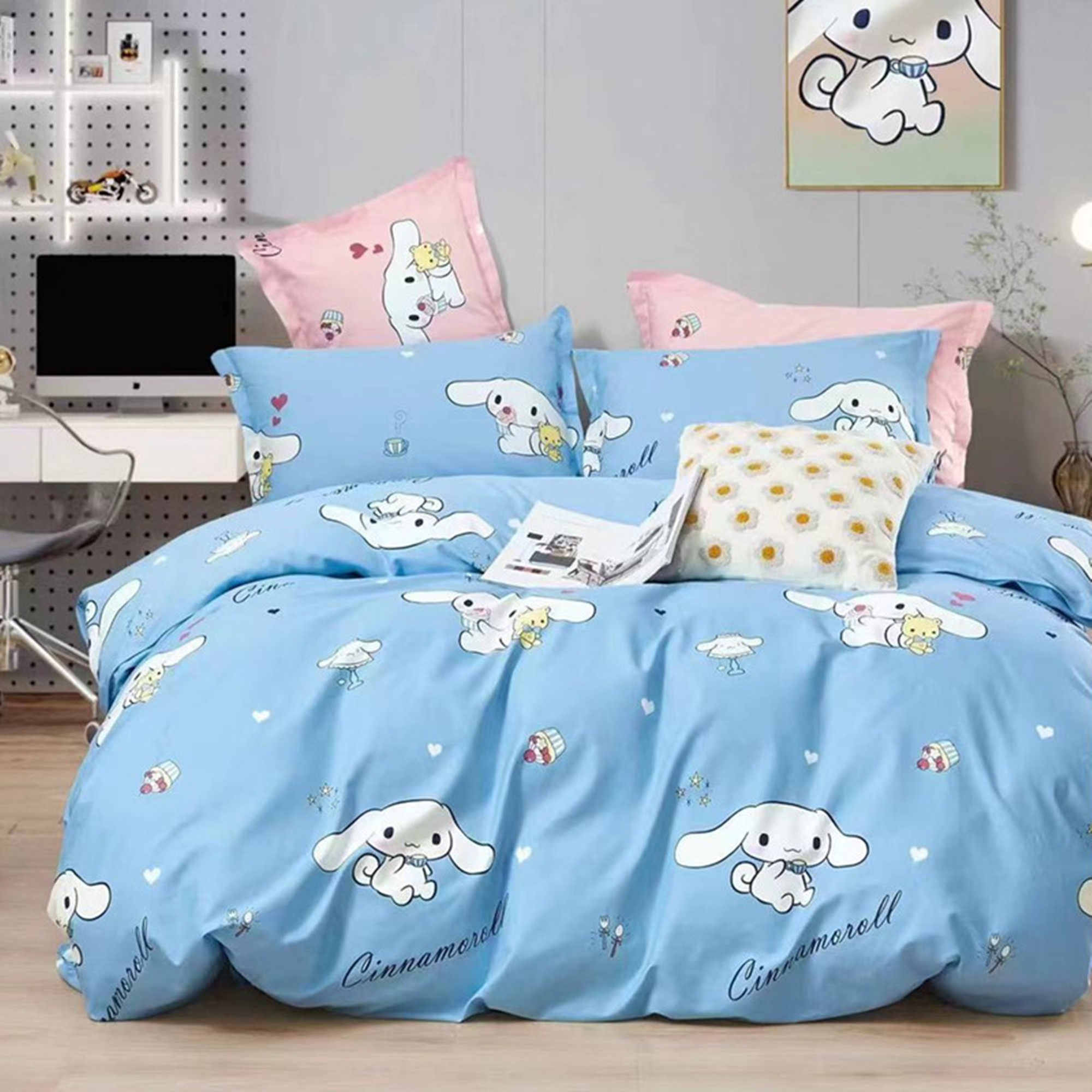 无印良品全棉四件套学生宿舍纯棉卡通儿童被套床单三件套床上用品