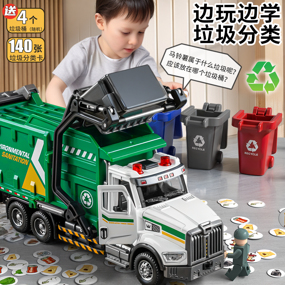 大号合金环卫车儿童玩具垃圾车分类仿真工程车男孩礼物运输车模型