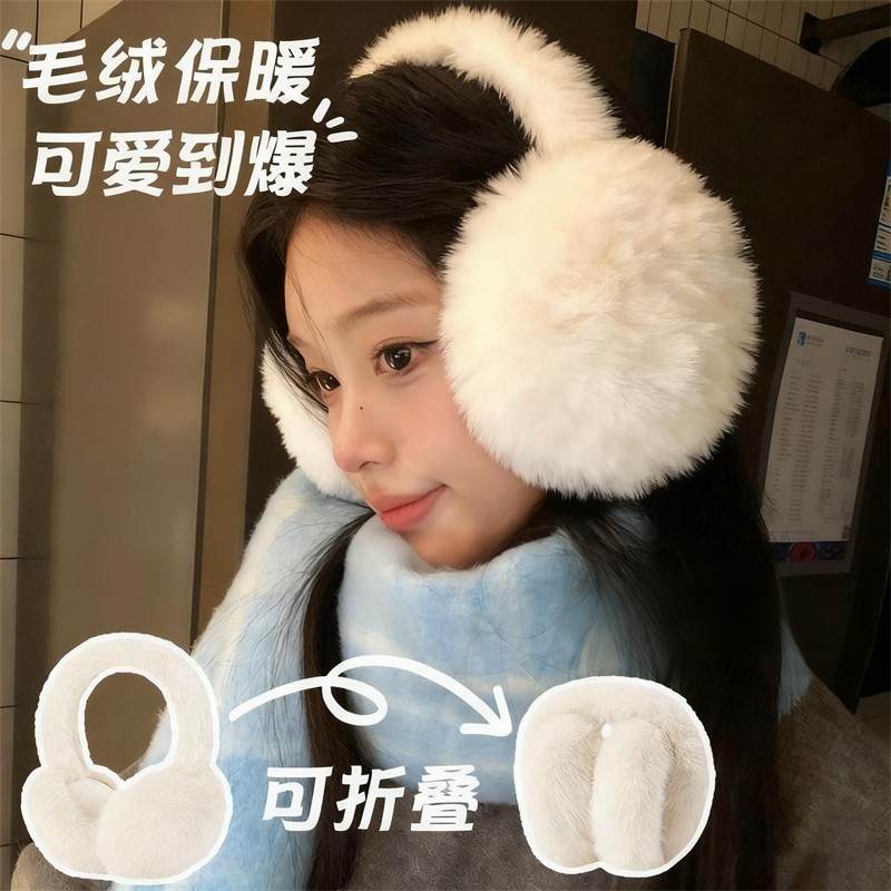 毛绒耳罩冬季保暖耳包护耳朵耳捂子可折叠学生耳套防寒白色口罩
