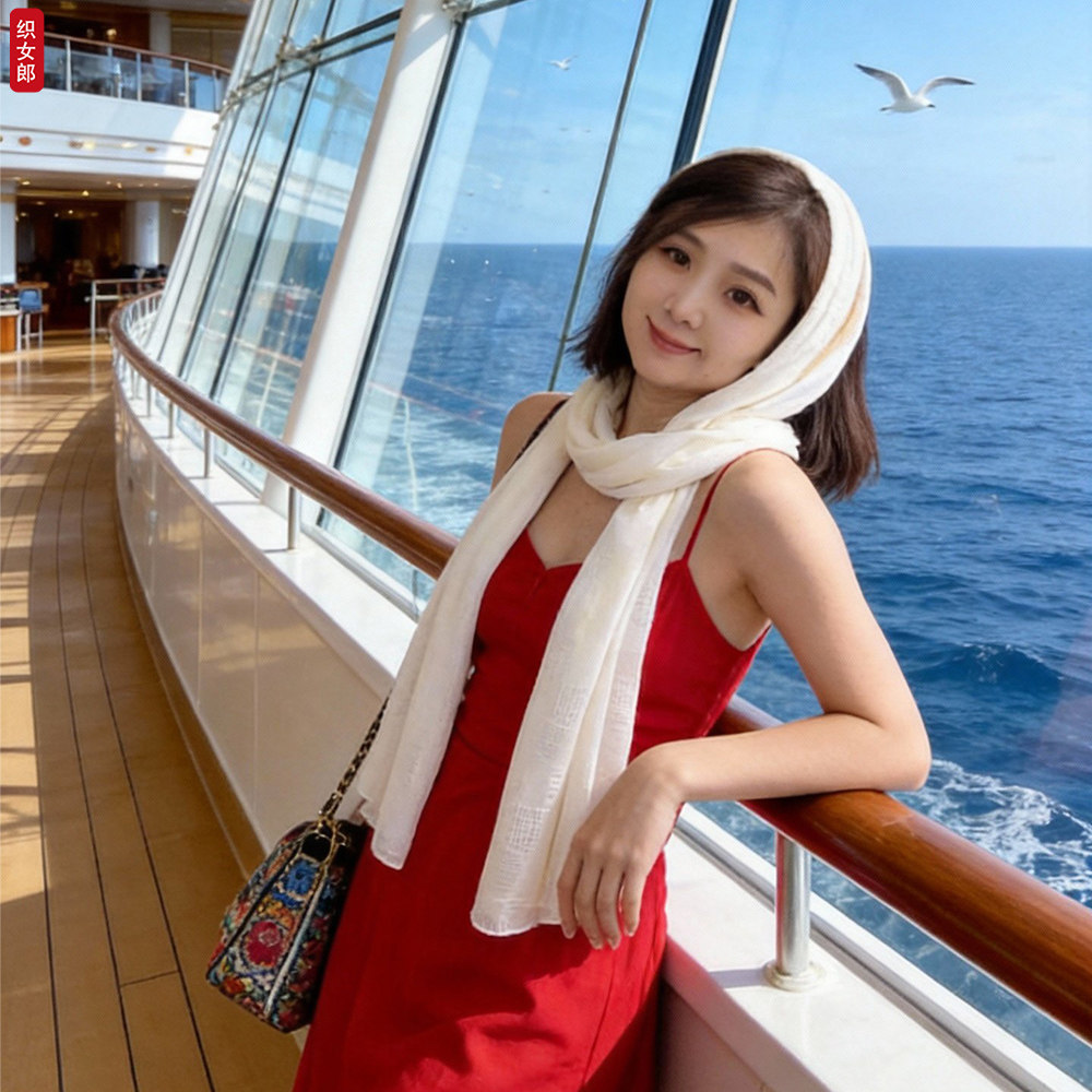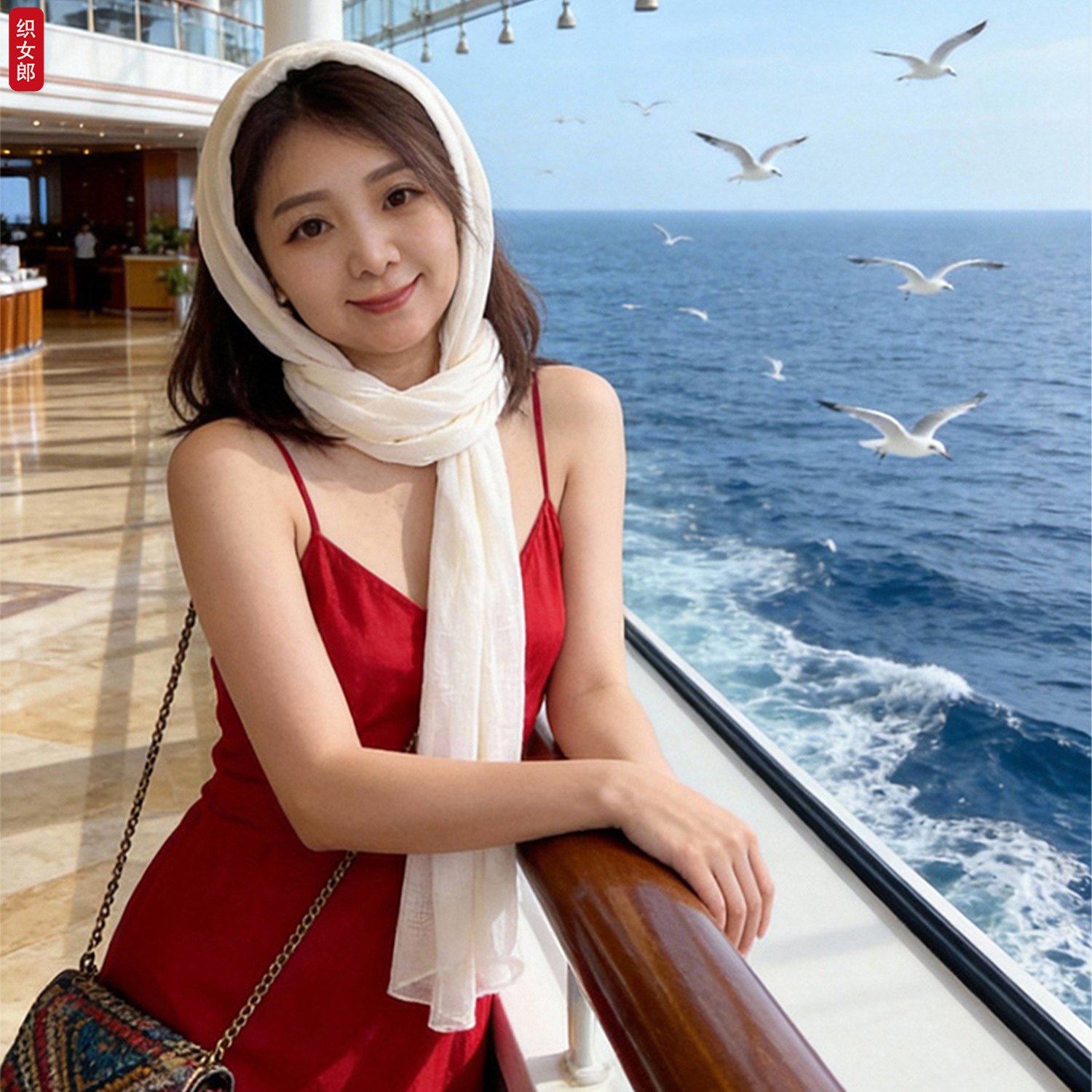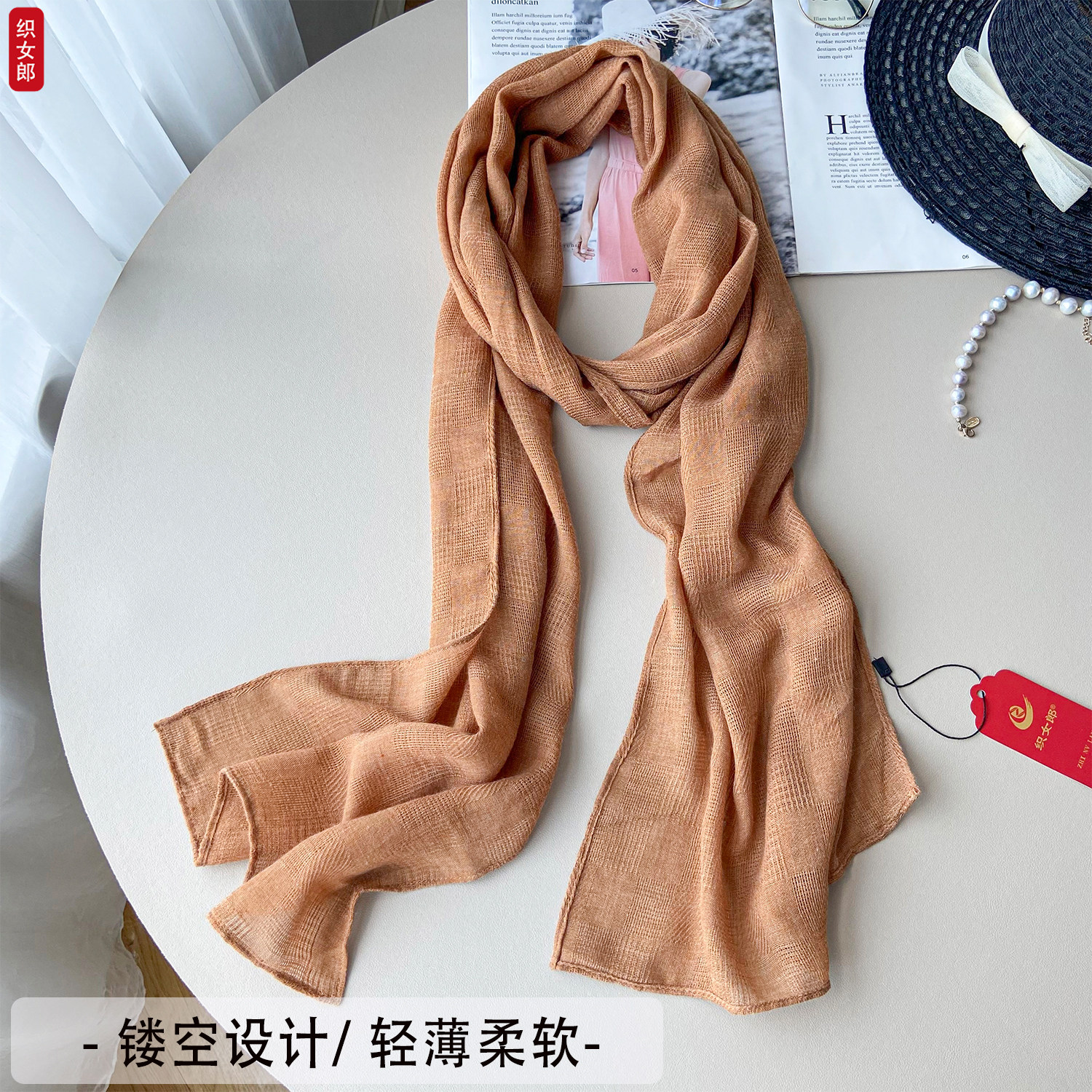 纯色棉麻披肩外搭女2025新款民族风夏季薄款丝巾敦煌旅游拍照头巾