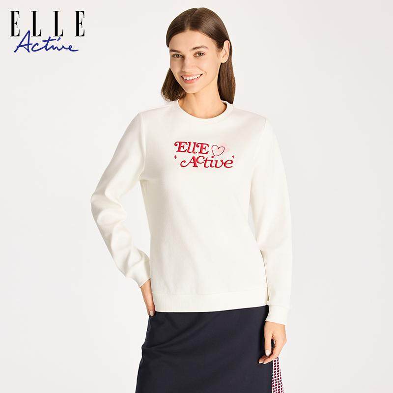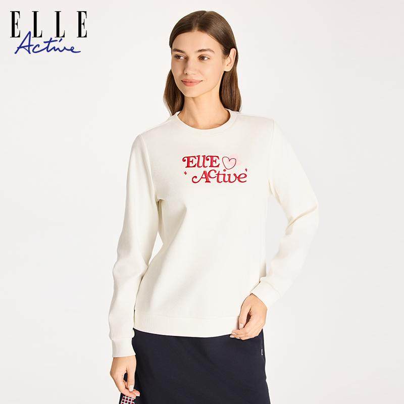 ELLE Active本命马年新春红色卫衣女质感刺绣圆领套头衫长袖上衣