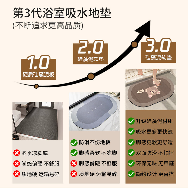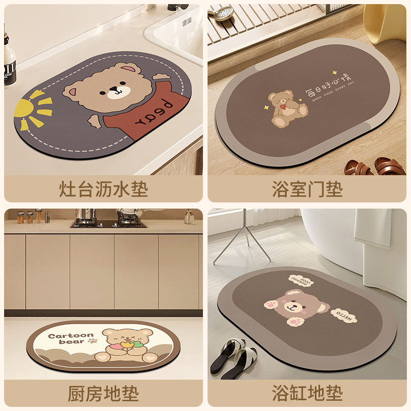 卡通硅藻泥浴室吸水脚垫地垫卫生间门口防滑速干洗手间厕所家用