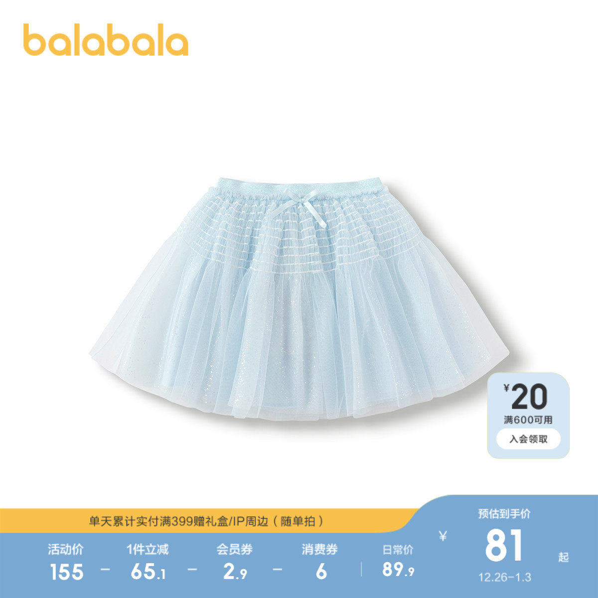 巴拉巴拉童装女童短裙网纱蓬蓬裙2025春秋新款裙子甜美白色半身裙