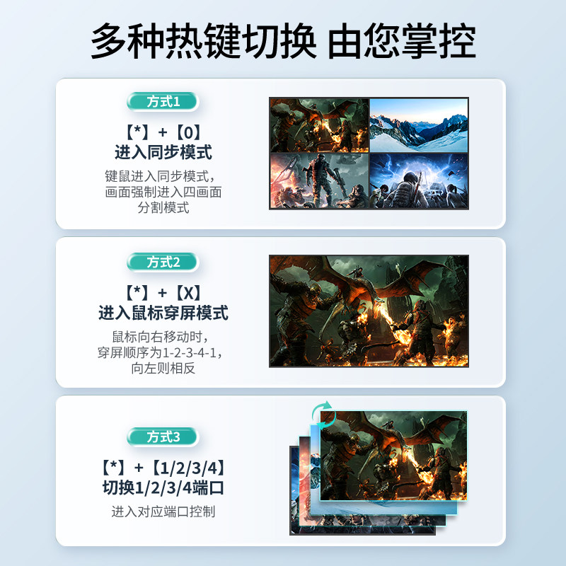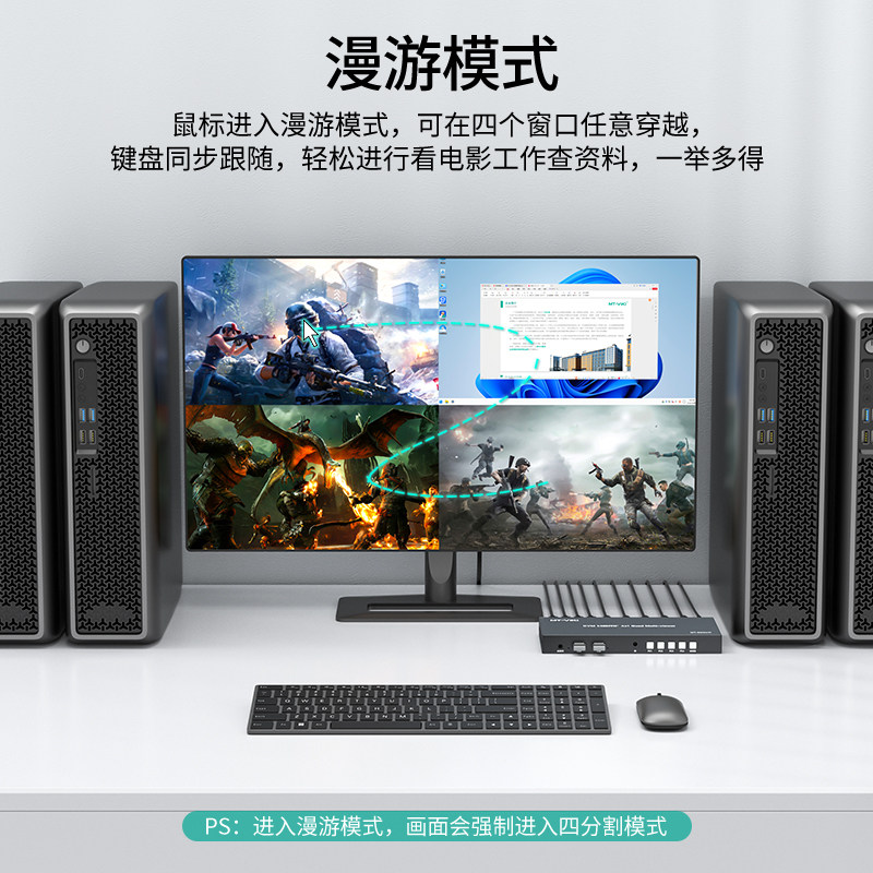 迈拓维矩MT-SW041P HDMI KVM无缝 秒切换分屏分割器屏幕画面四进一出4台电脑USB键鼠同步一体机4进1出DNF游戏
